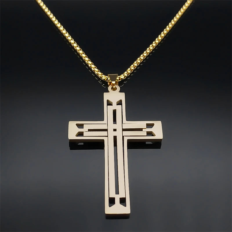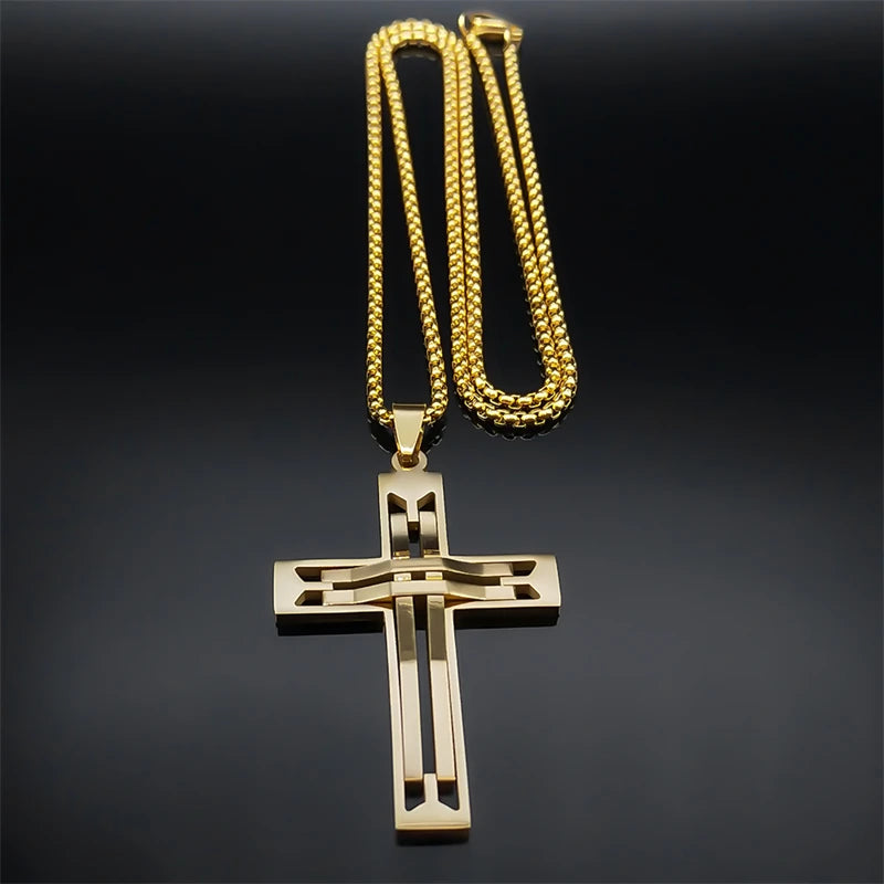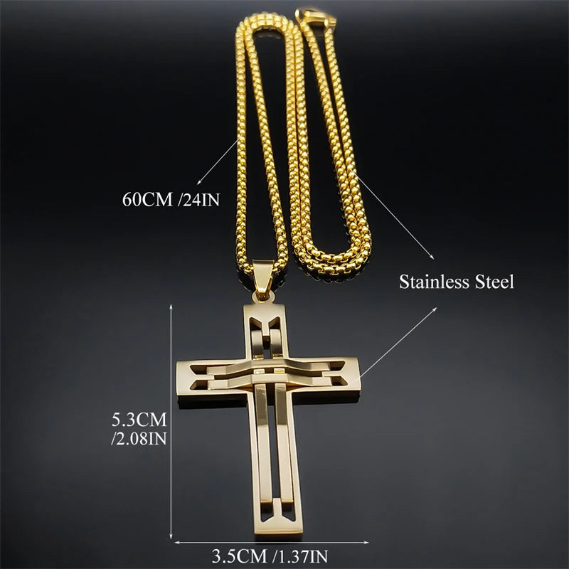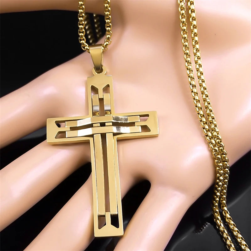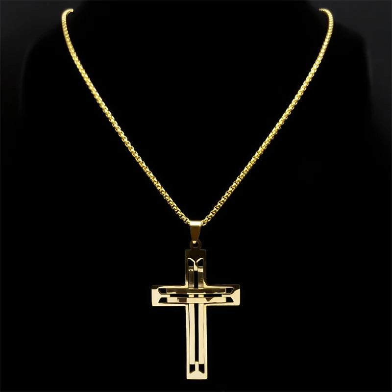 Collar con colgante grande de cruz de Jesús de estilo hip hop para hombre, de acero inoxidable, color dorado, con crucifijo cristiano, cadena, joyería punk