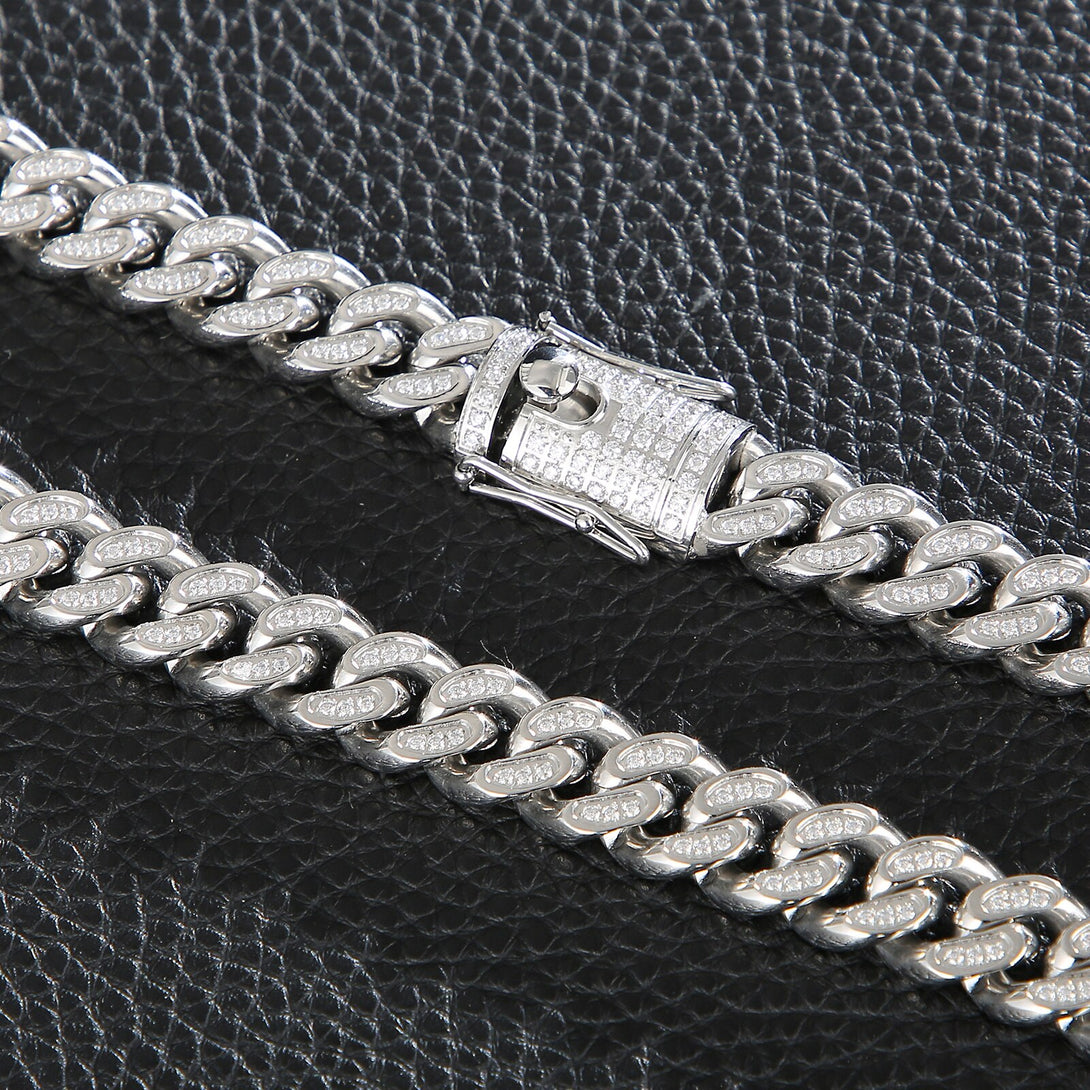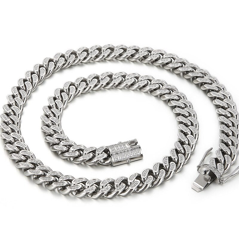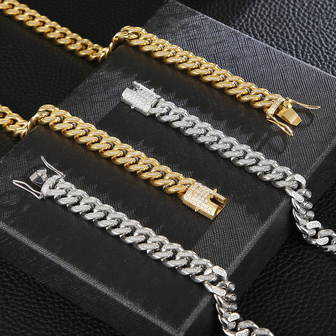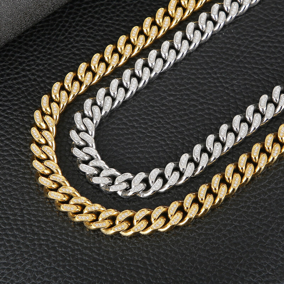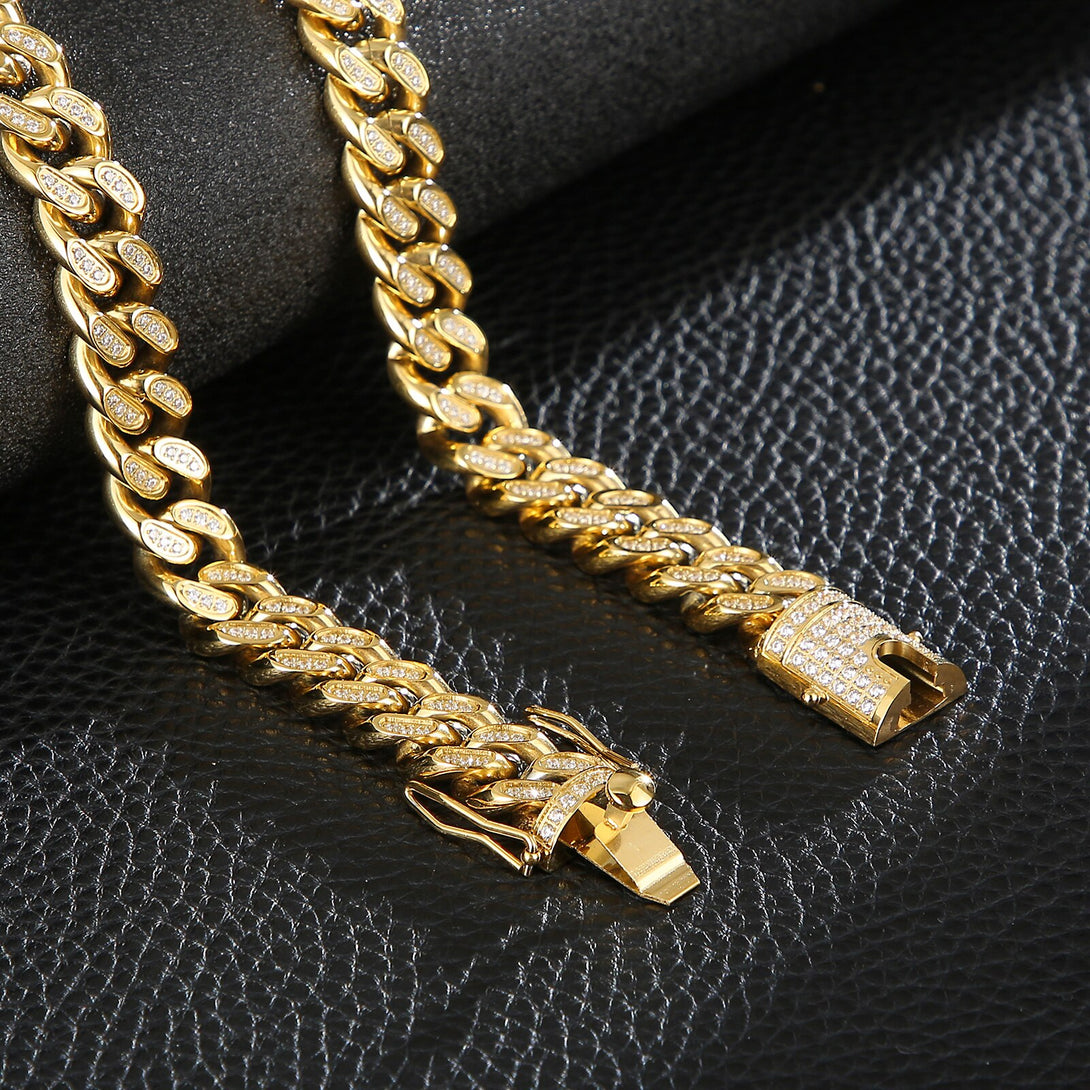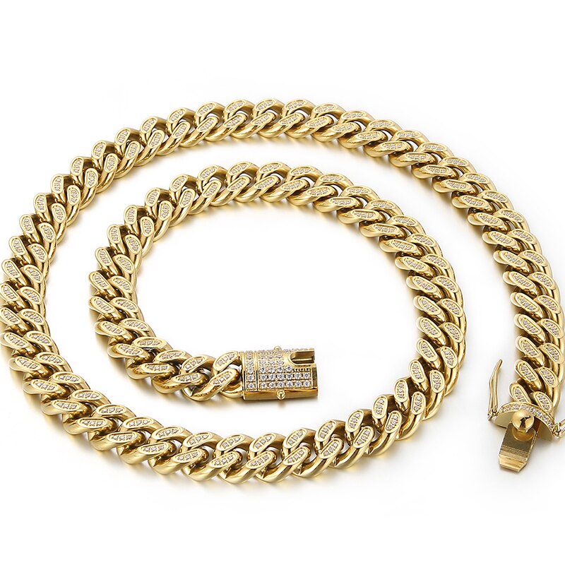 Collar de cadena de eslabones cubanos Hiphiop de 12 mm para hombre, de acero inoxidable chapado en oro de lujo, estilo Miami, con brillantes.