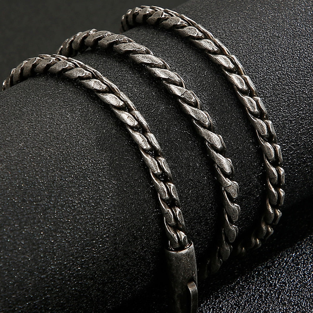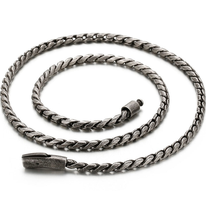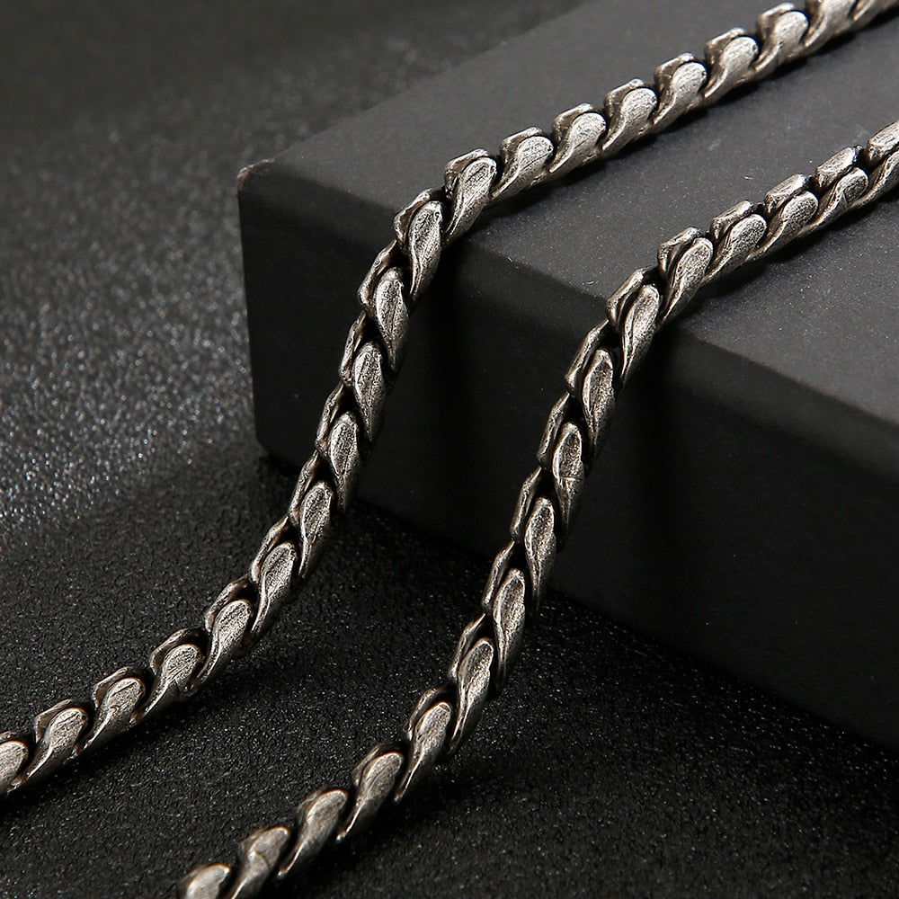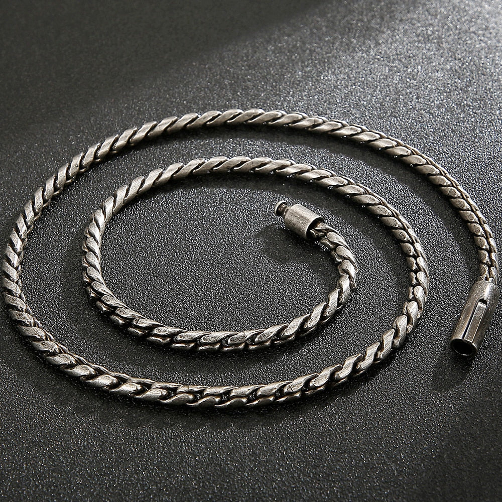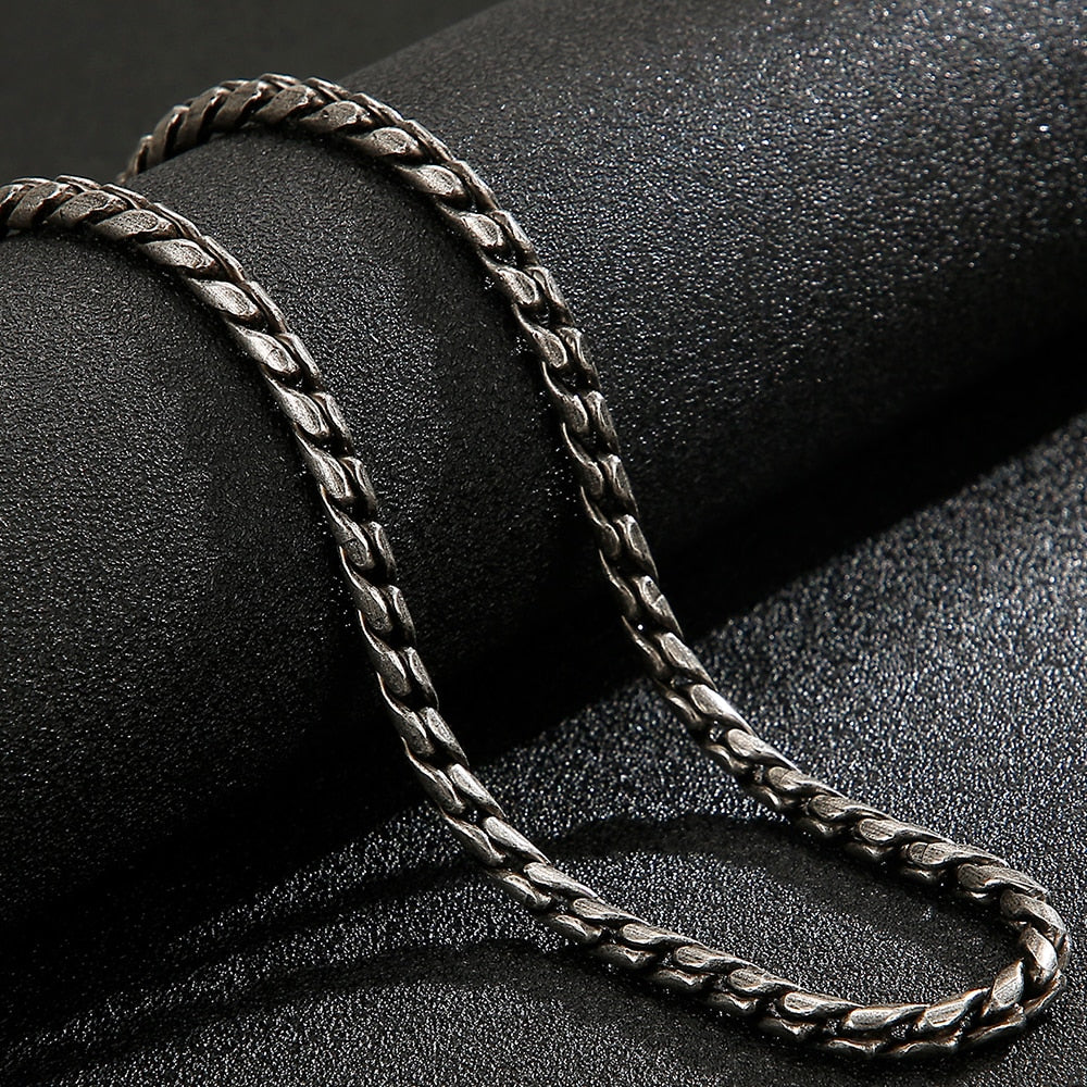 Cadena de eslabones estilo hip hop para hombre, de 5 mm, estilo vintage, color plata antigua, de acero inoxidable, de 66 cm, para hombre, niño y hombre, estilo militar.