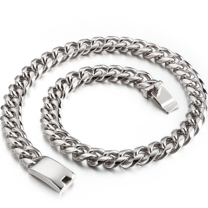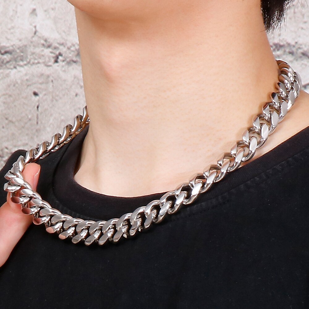 Collares de hip hop para hombre, cadena de eslabones de 60/65 cm de largo y 13/15 mm, de acero inoxidable pesado, hechos a mano, accesorios de joyería.