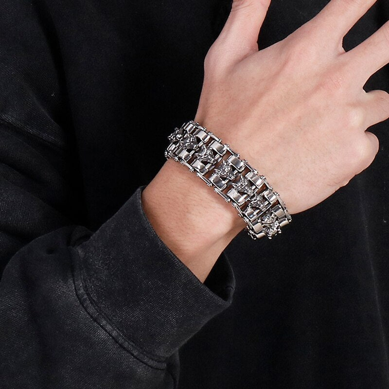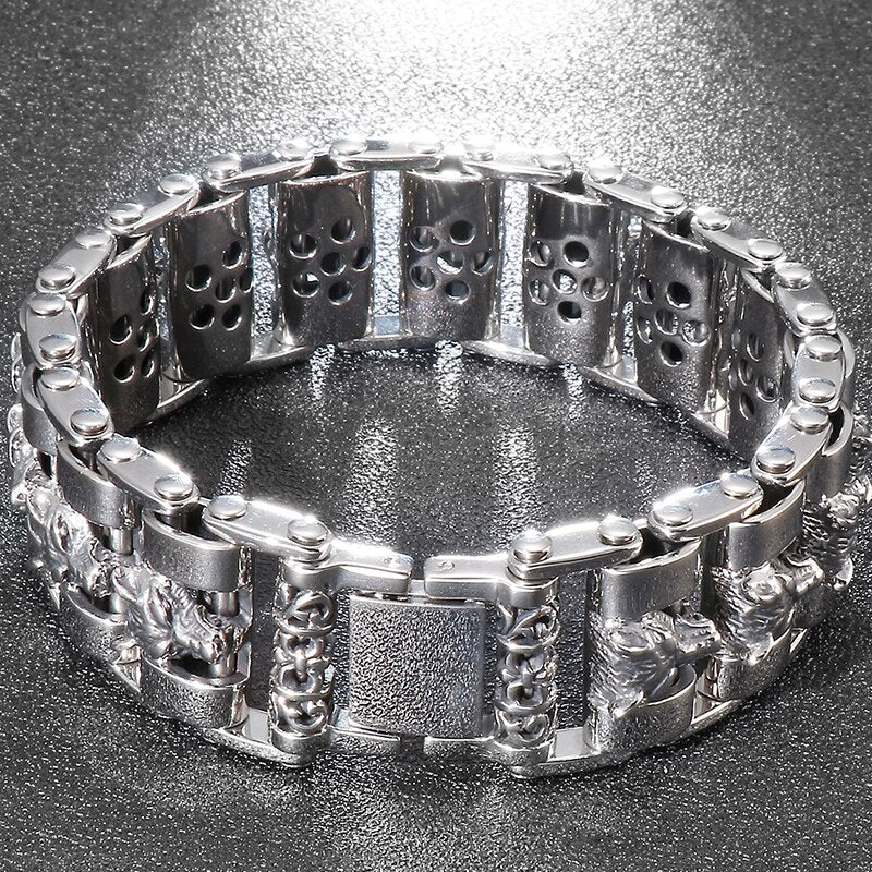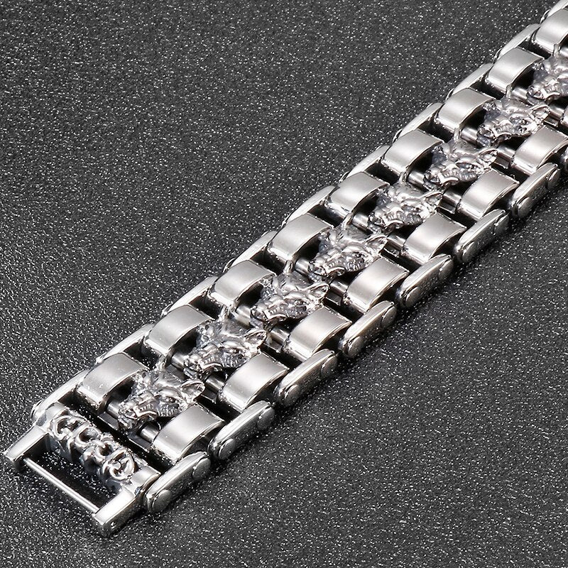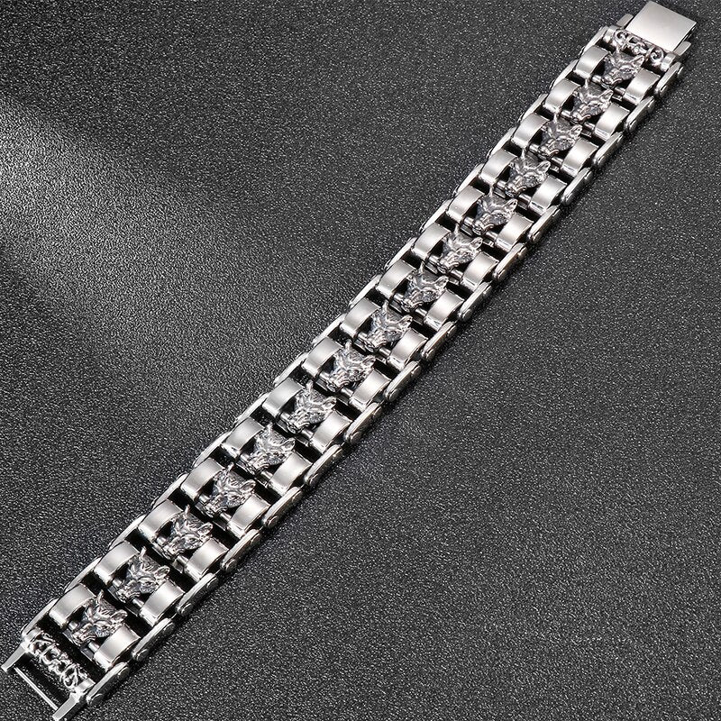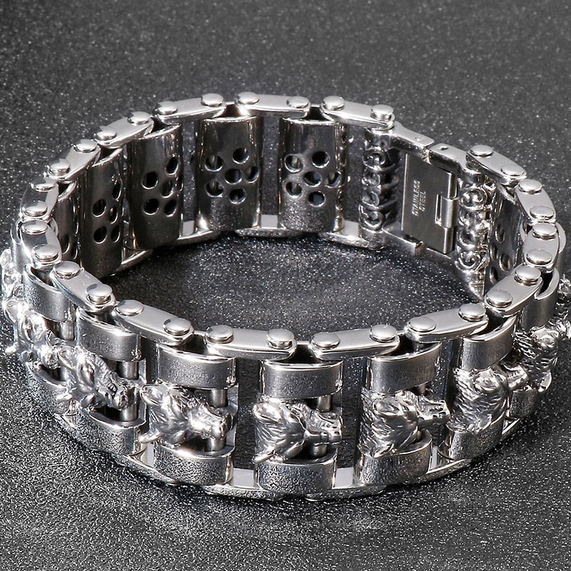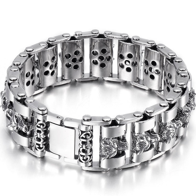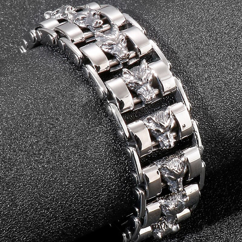 Pulsera de cabeza de lobo de hip hop para hombres y niños, pulseras y brazaletes de acero inoxidable macizo para hombre, joyería de motociclista para hombre, regalos para hombres.