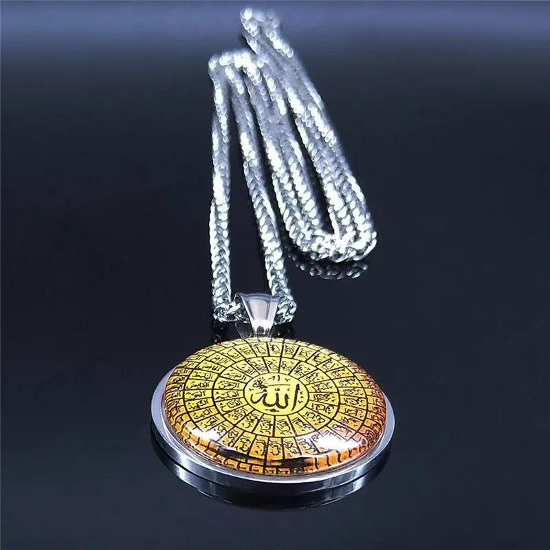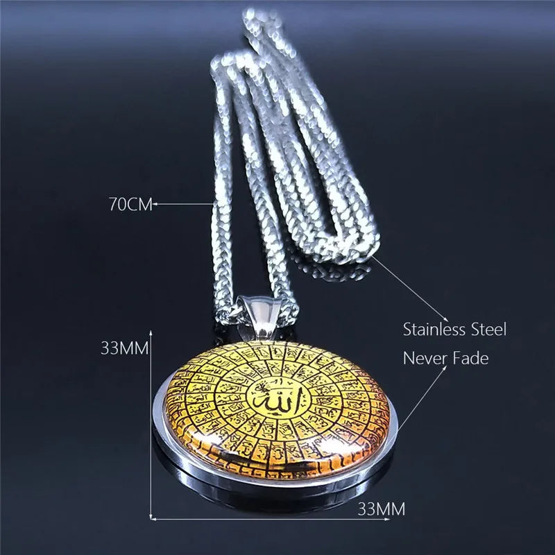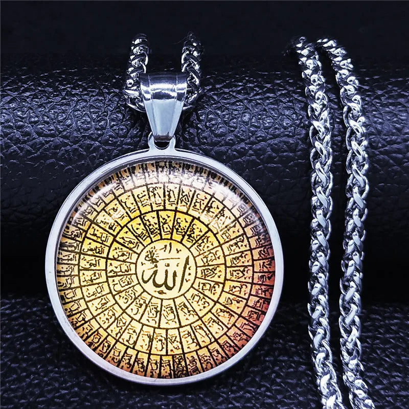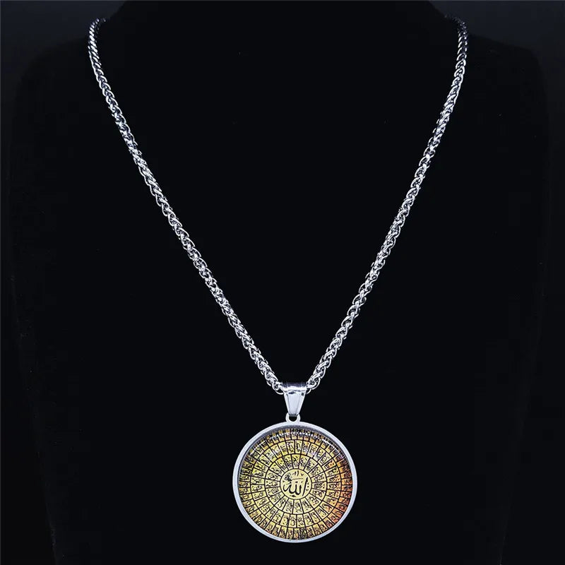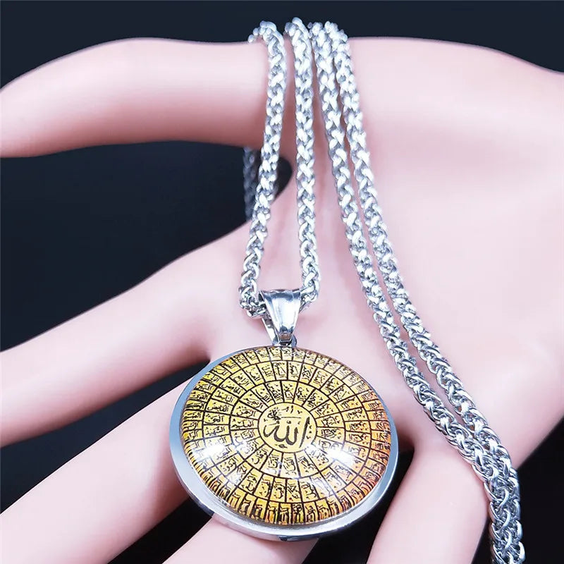 Collares largos de acero inoxidable con cristales de Alá y el Corán árabe islámico para hombre y mujer