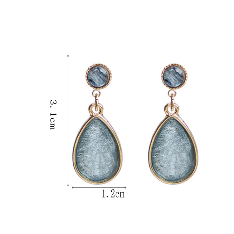 Pendientes de clip con forma de gota de agua geométrica de piedra de cristal azul para mujer, temperamento simple japonés