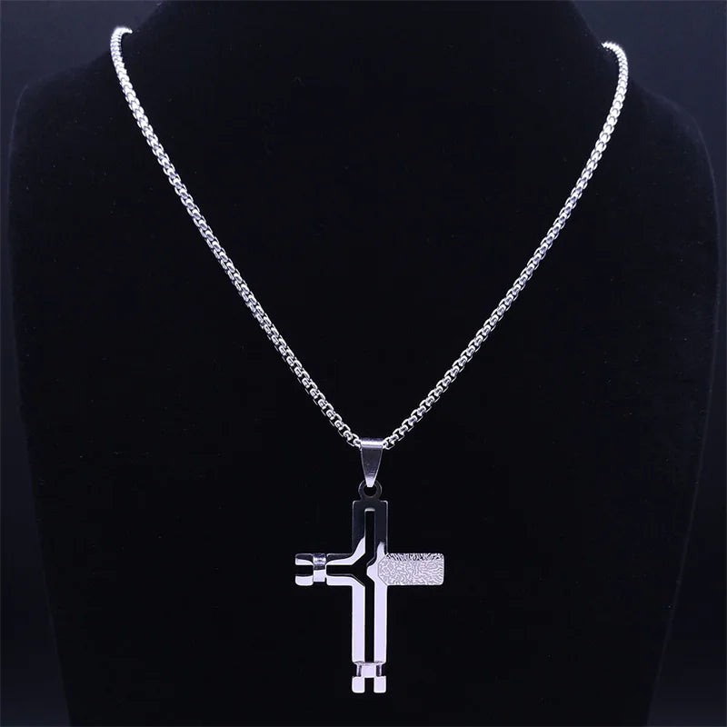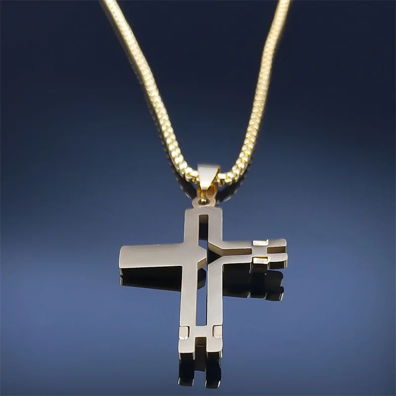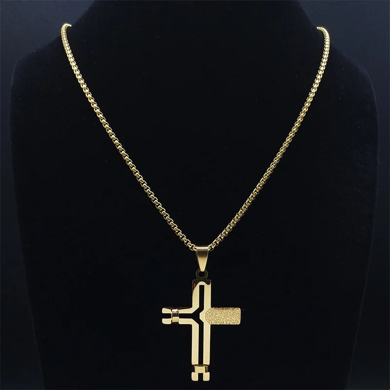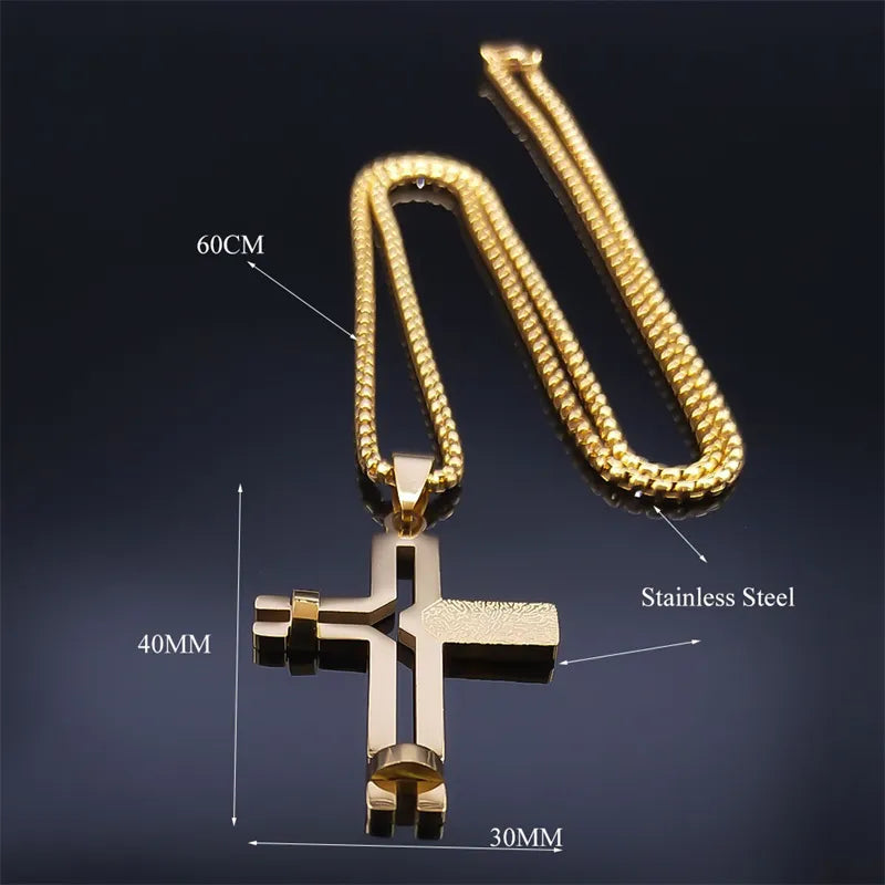 Collar con colgante de cruz de Jesús, acero inoxidable, color dorado, cadena de amuleto religioso del Santo Señor, joyería para hombre
