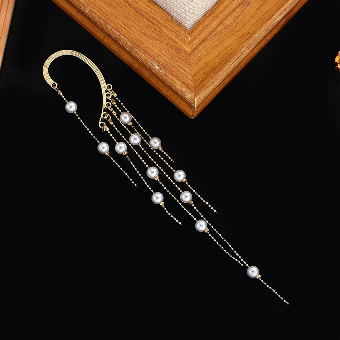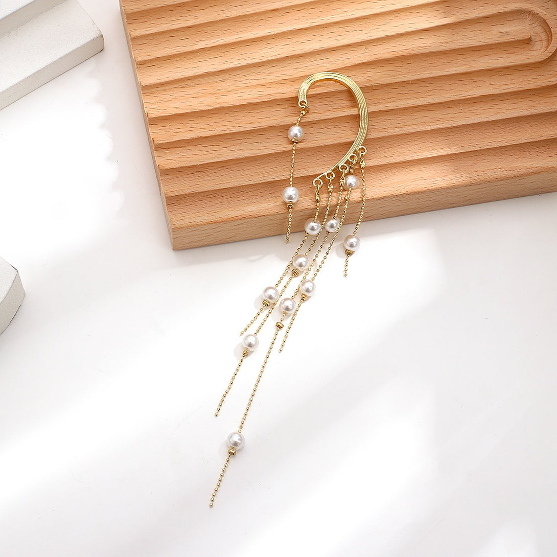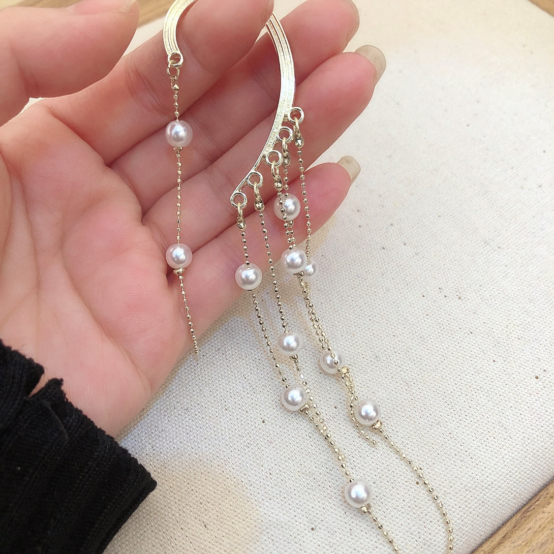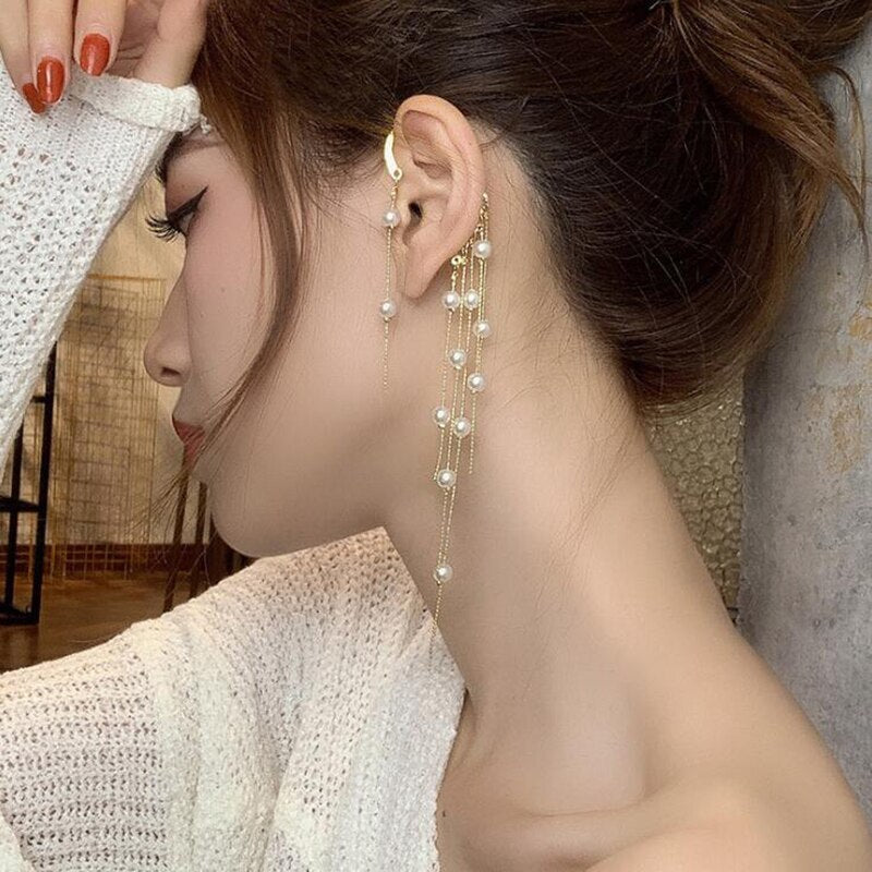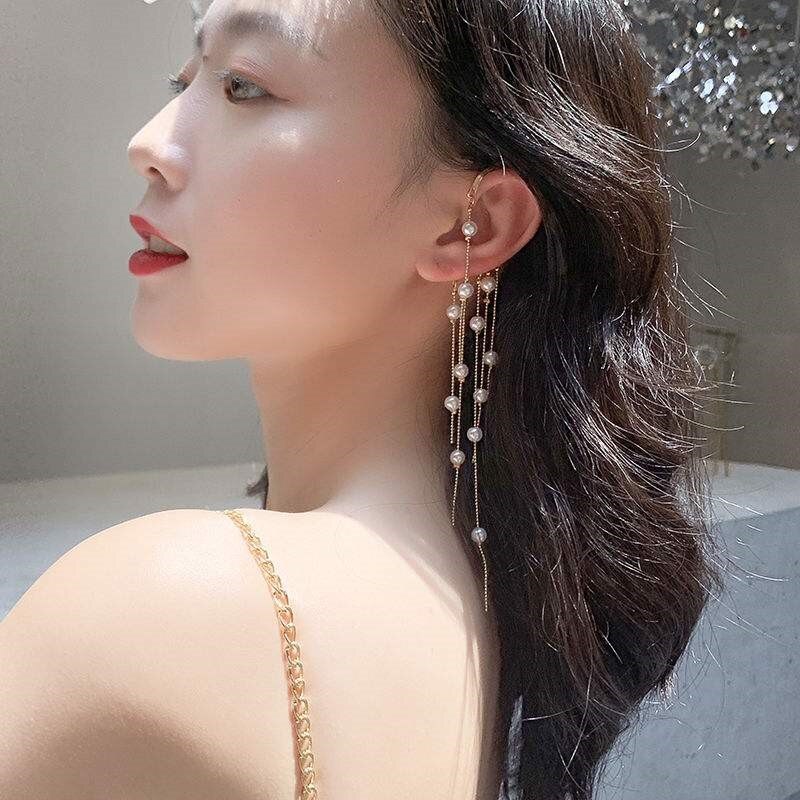 Pendientes de perlas coreanas con forma de arco y perforación larga, pendientes de clip colgantes