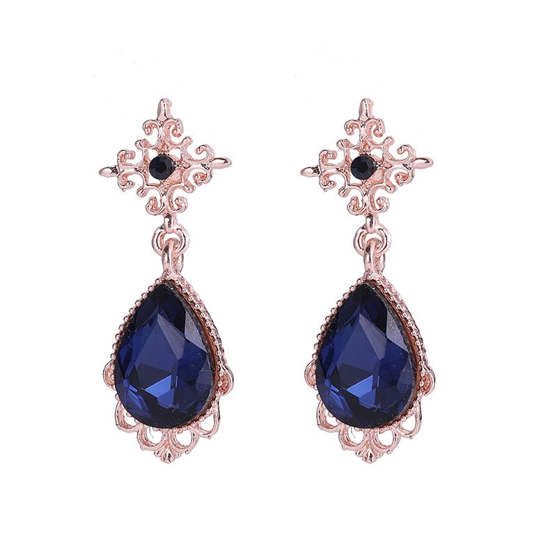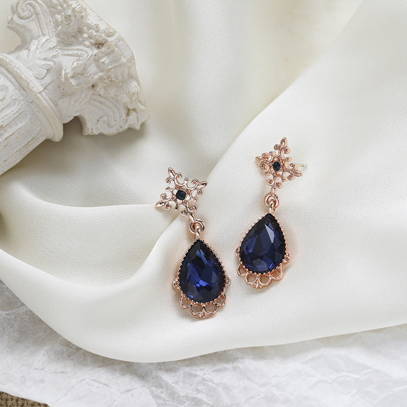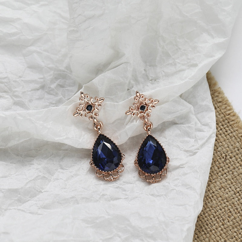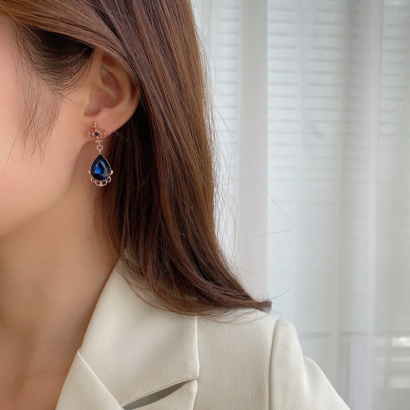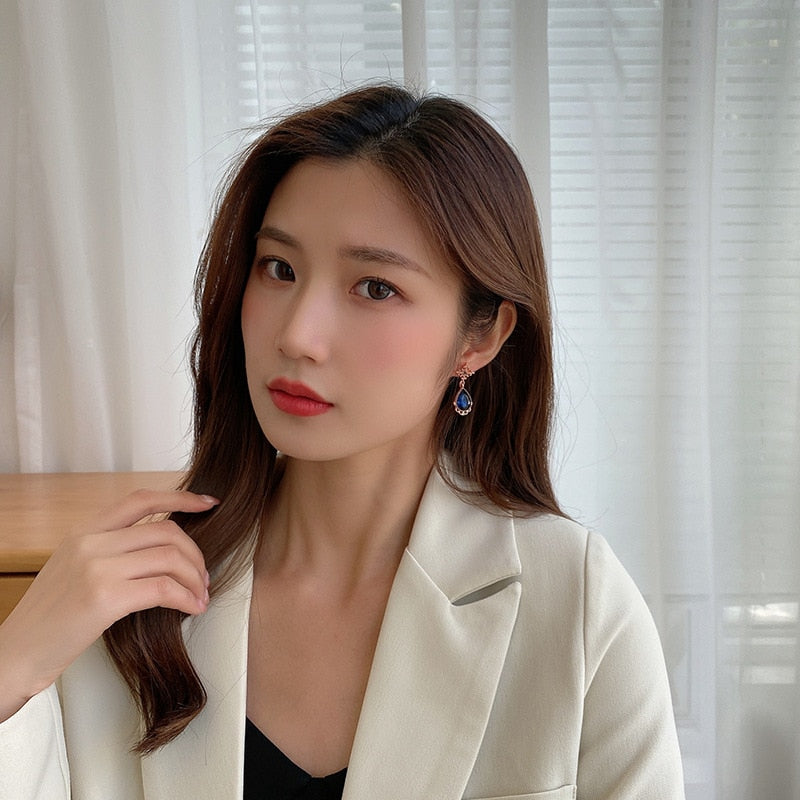 Pendientes de moda: Pendientes de clip sin perforar de la estrella de la televisión coreana IU, pendientes de clip retro barrocos con gota de agua y piedra azul, sin perforar para mujer.