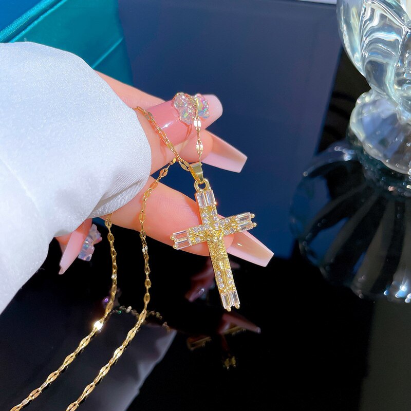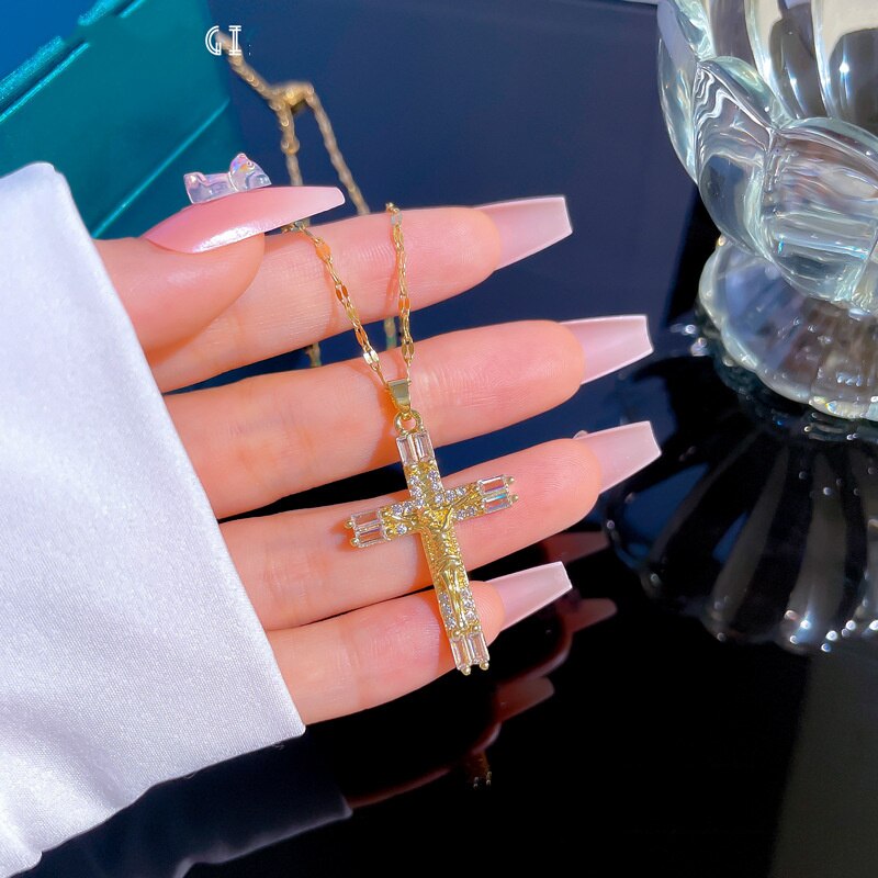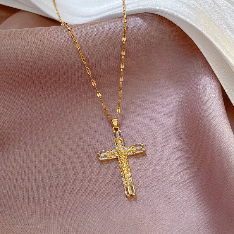 Collar con colgante de cruz grande vintage coreano de acero inoxidable 585, joyería gótica religiosa de color dorado geométrico.