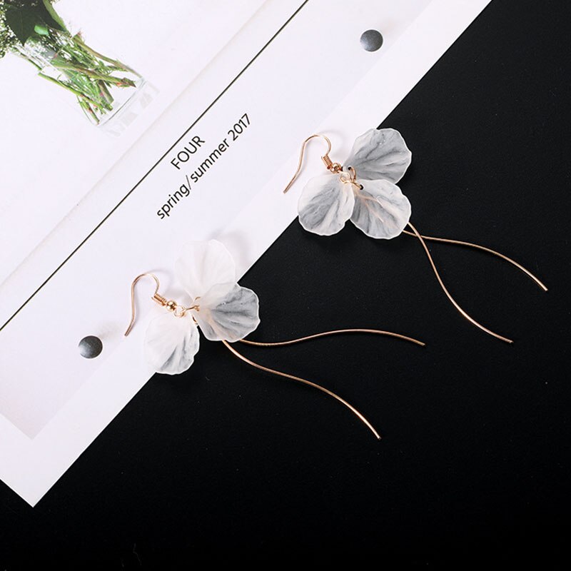 Pendientes de moda - Nuevos pendientes largos de clip con pétalos de acrílico blanco coreano para mujer, accesorios, pendientes, joyería de moda