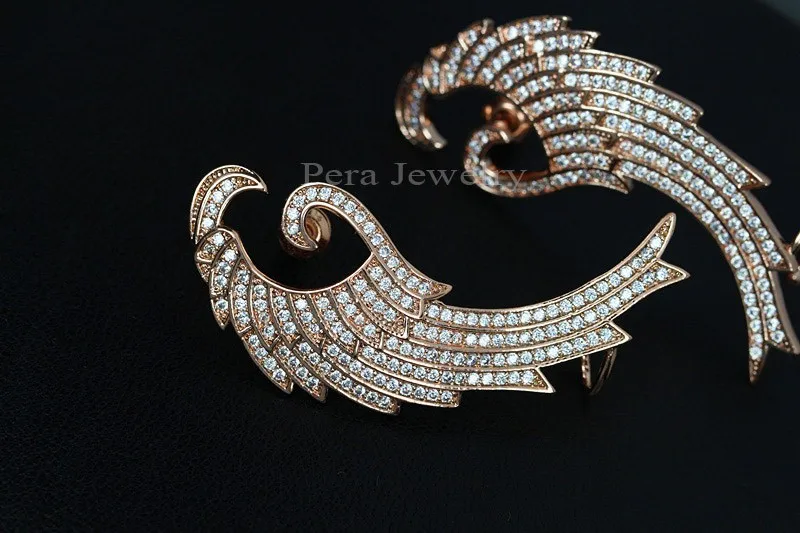 Joyería CZ - Pendientes grandes de circonita cúbica con micropavé, estilo punk, de lujo, color oro rosa, E083