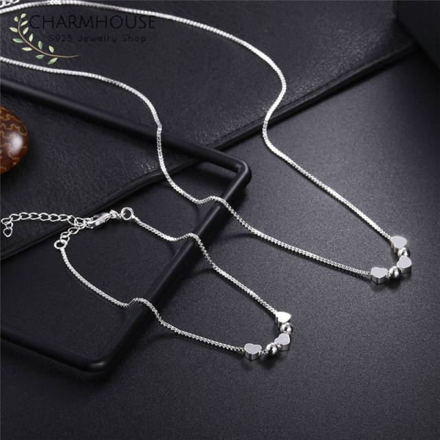 Material: Plata 925 Longitud del collar: 18 pulgadas Longitud de la pulsera: 8 pulgadas Cantidad: 2 piezas Condición: 100% nuevo Paquete: bolsas opp