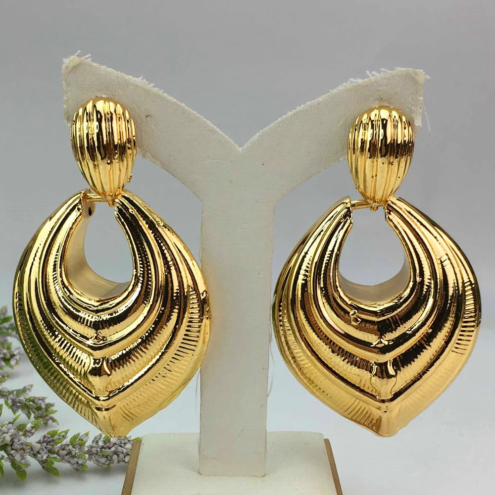 Pendientes grandes de cobre ligeros para mujer, aretes brasileños.