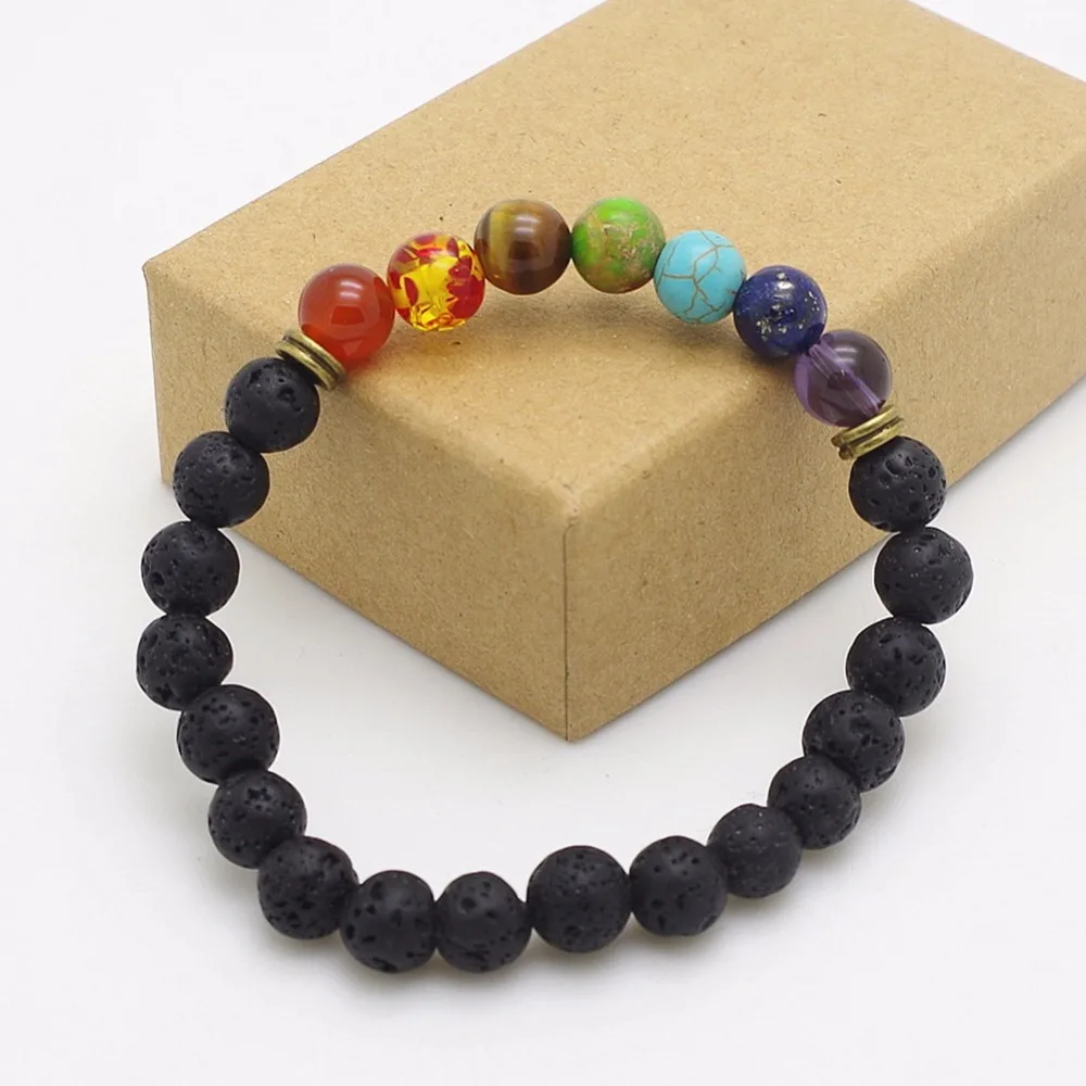 Pulsera de equilibrio de 7 chakras con cuentas de 8 mm y roca de lava para hombres y mujeres, pulsera de chakras de yoga con piedra de oración de Reiki, pulseras para mujer.