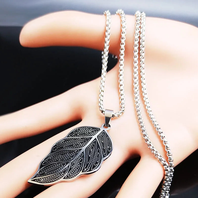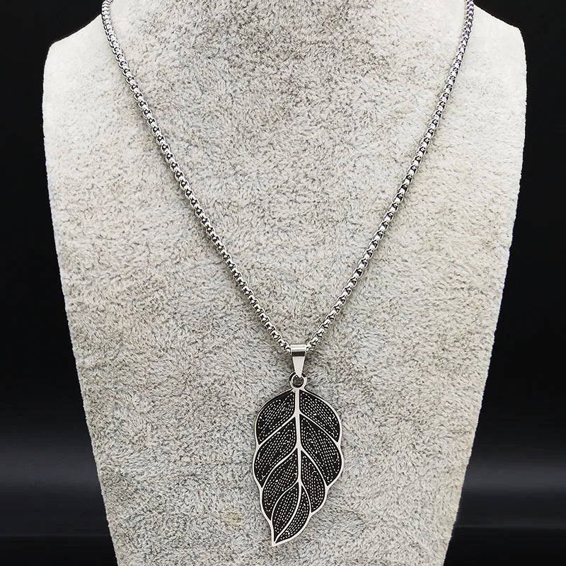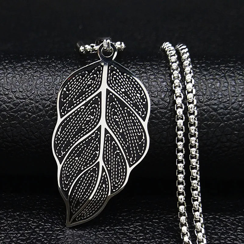 Collar de cadena de acero inoxidable con forma de hoja para mujer, color plata, colgantes, joyería de acero inoxidable, joyería para mujer
