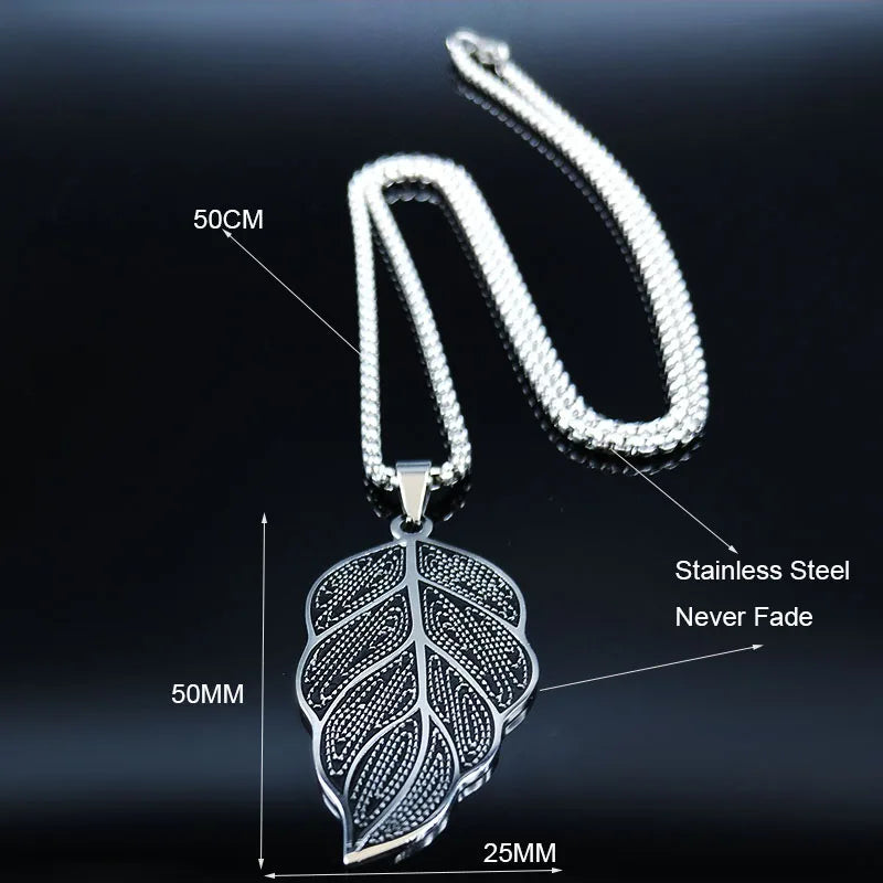 Estilo: Collar de cadena de acero inoxidable con forma de hoja