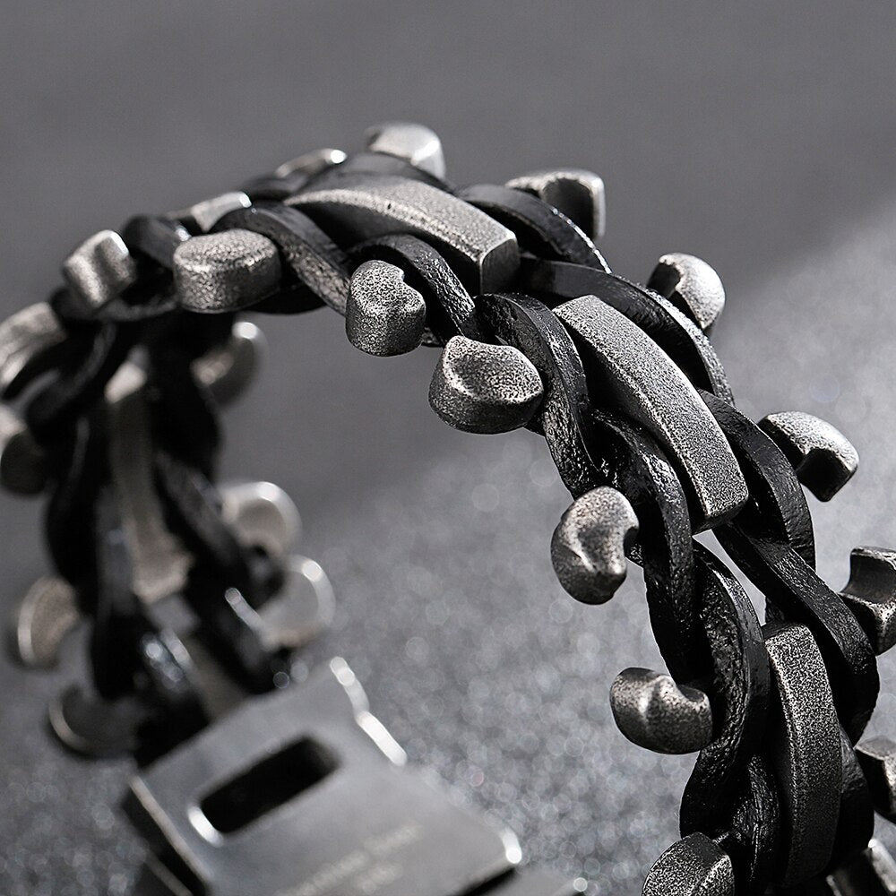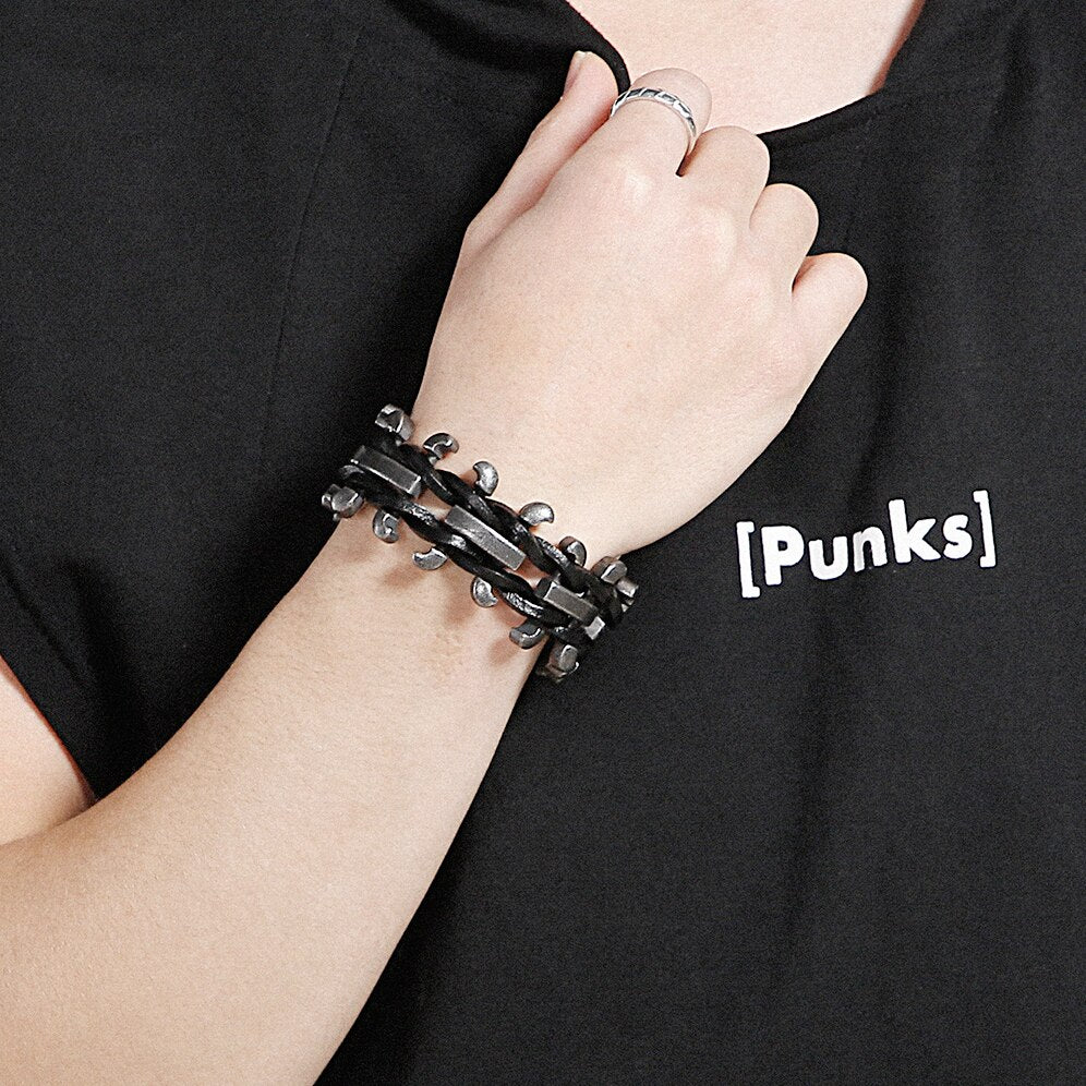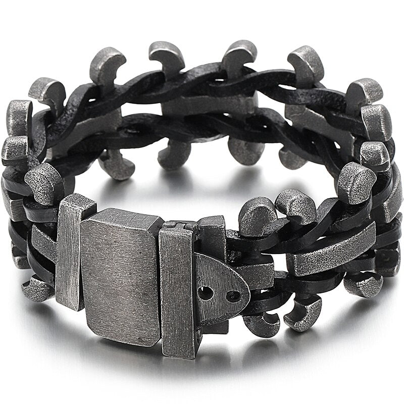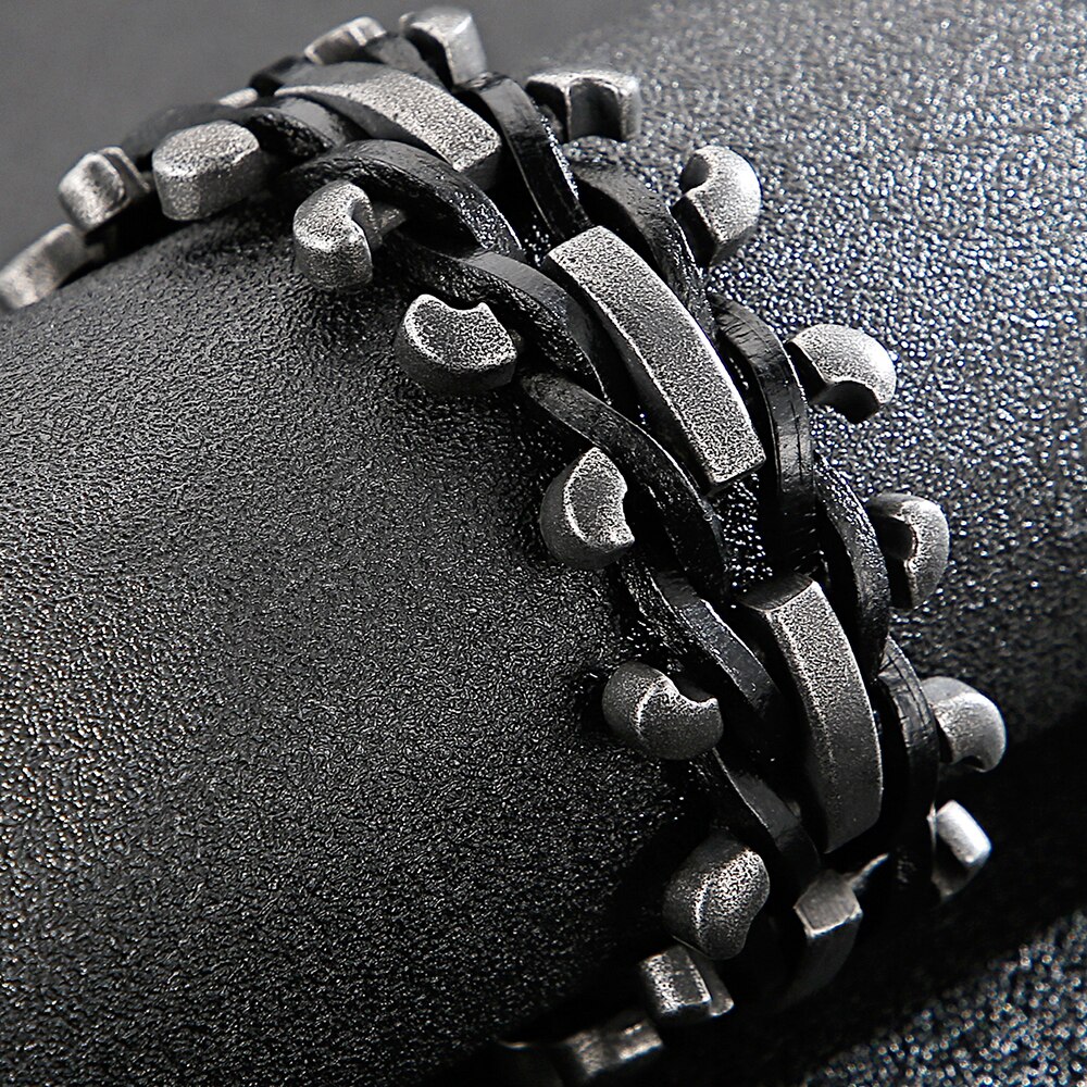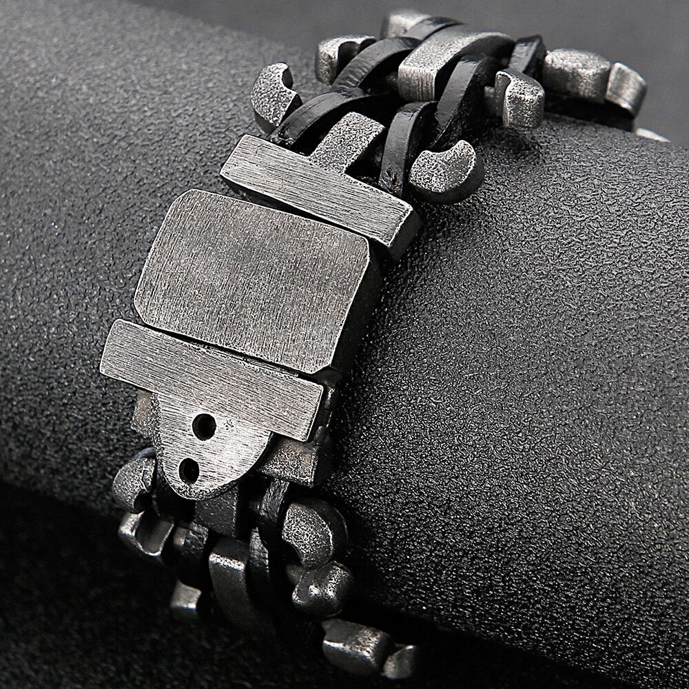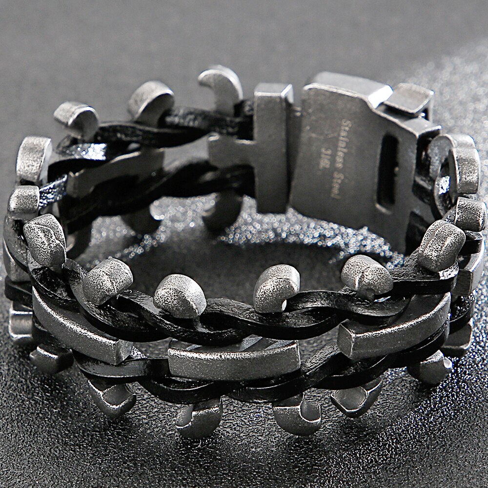 Pulsera de cuero gótica de 30 mm con hebilla de cinturón, estilo hip hop, de acero inoxidable, ajustable, tipo brazalete.