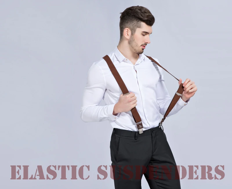 Tirantes de cuero para hombre, color azul marino, elásticos, con 3 clips, correa ajustable (3,5 x 120 cm) GBD9408