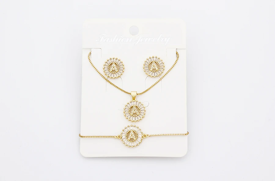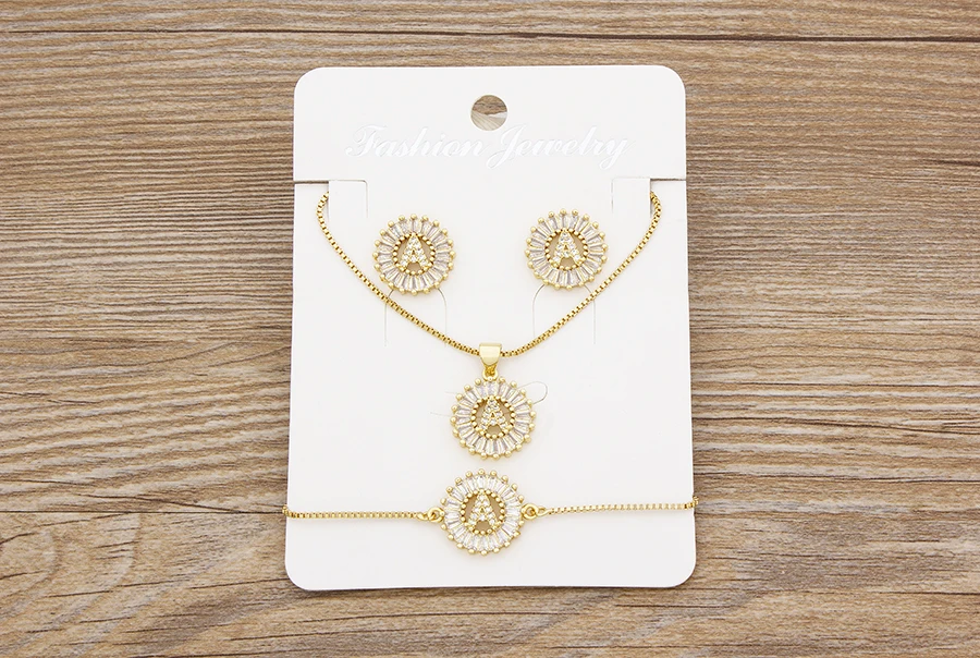 Gran oferta de collar, pendientes y pulsera de 26 letras para mujer, dijes iniciales del alfabeto, colgantes de nombre dorados, conjuntos de joyería de cobre y circonita.