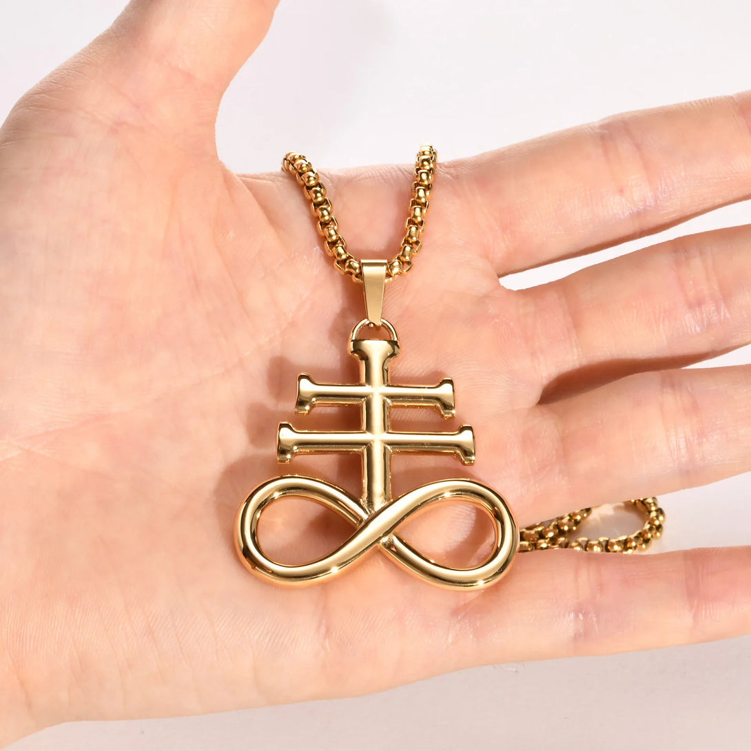 Colgante de cruz de Leviatán de acero inoxidable con emblema de cruz de Satán, símbolo de azufre, dije de sigilo, colgantes y collares.