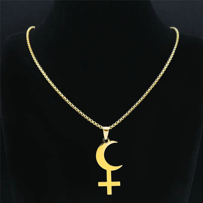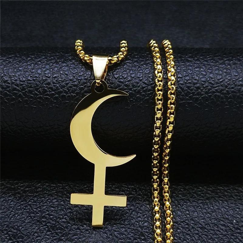 Collar de acero inoxidable con símbolo astrológico Lilith para mujer y hombre, color dorado, largo, joyería