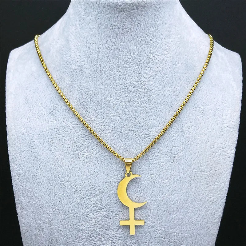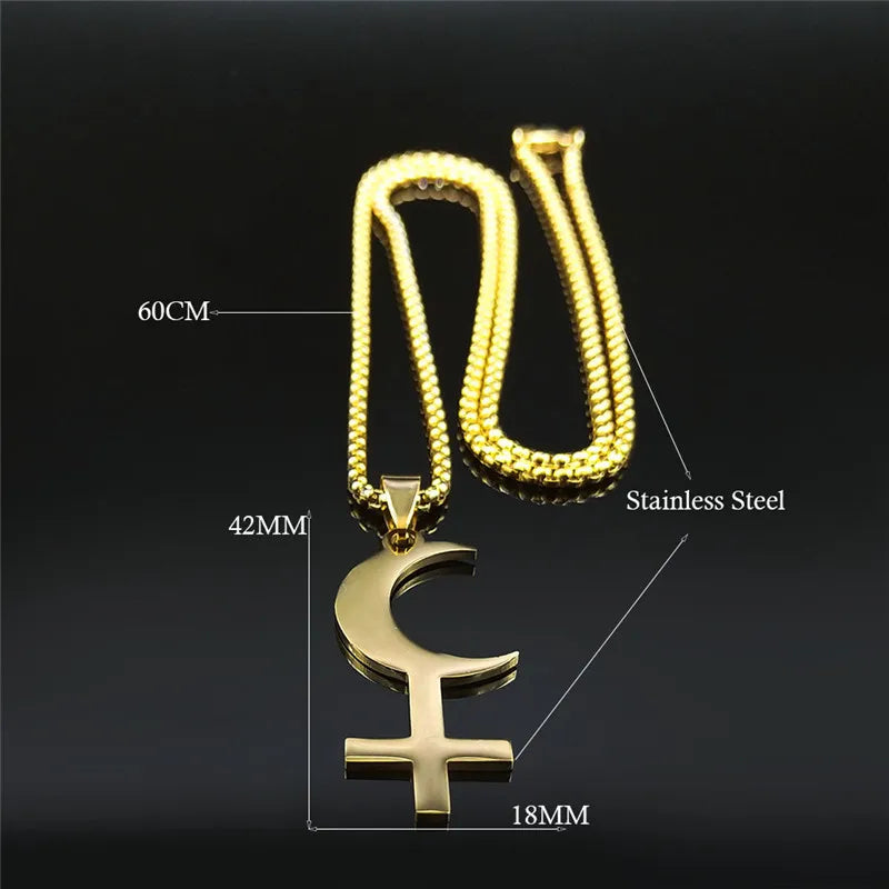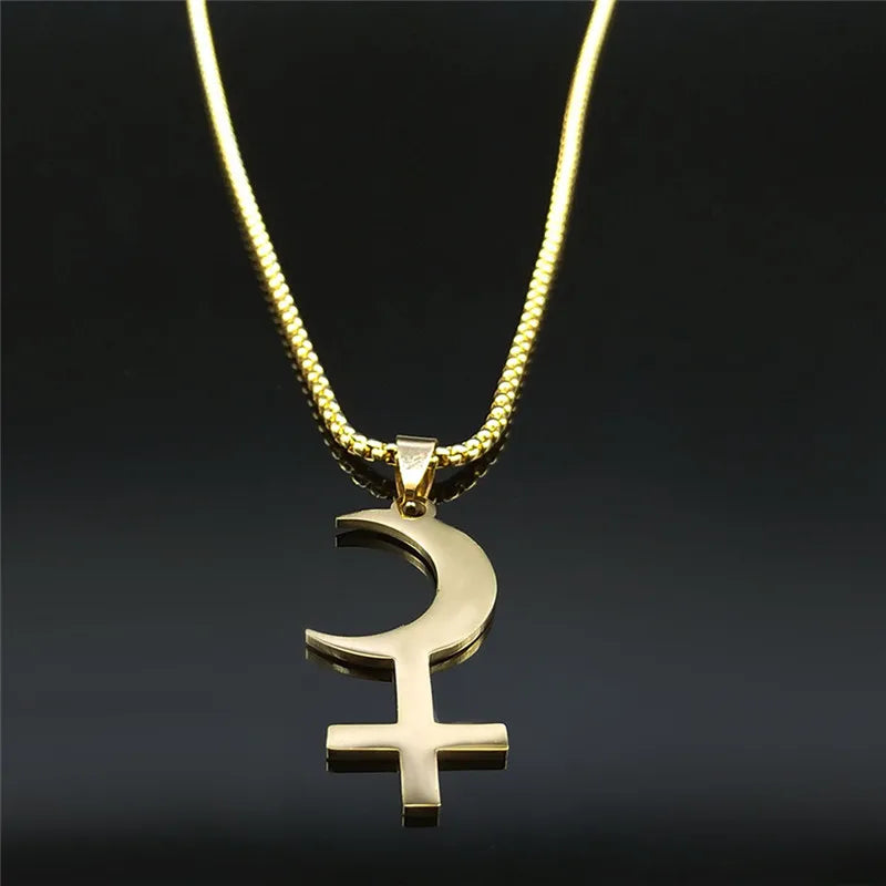 Collar de cadena de acero inoxidable con el símbolo astrológico de Lilith, color dorado