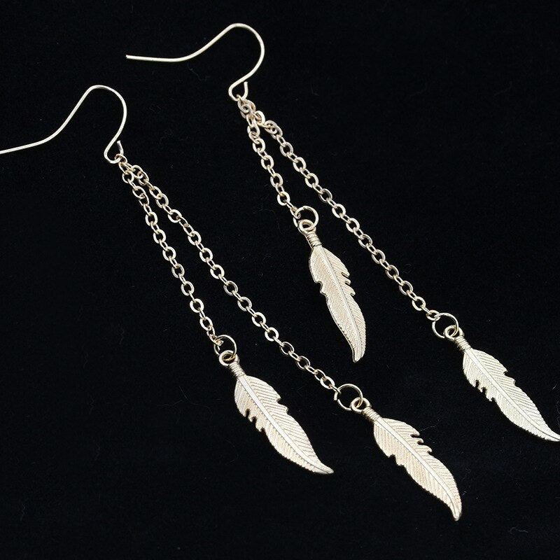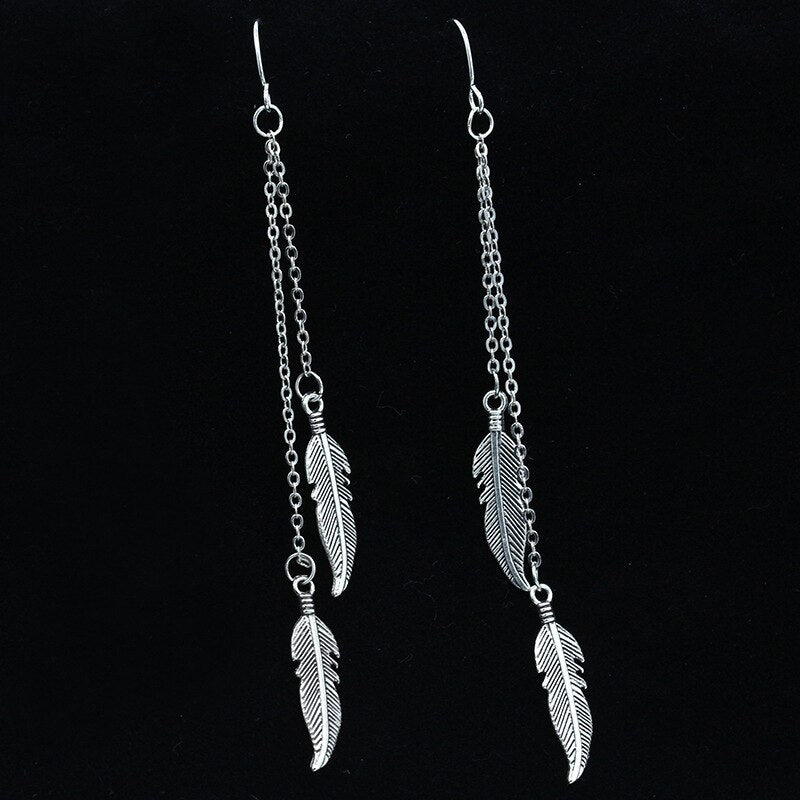 Pendientes de moda: pendientes de cadena larga de aleación con plumas y clip, sin perforaciones, para mujeres, niñas, fiestas, bodas, regalos de joyería.