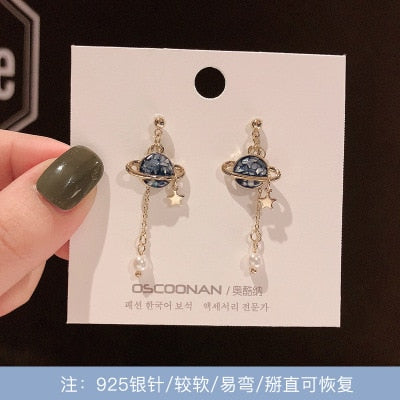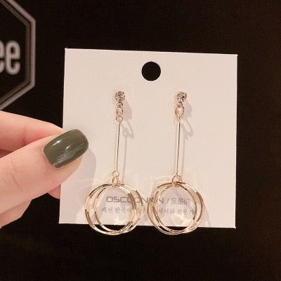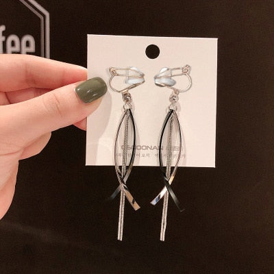 Pendientes de moda: pendientes coreanos, populares, geométricos, con clip, largos, retro, exagerados, de moda.