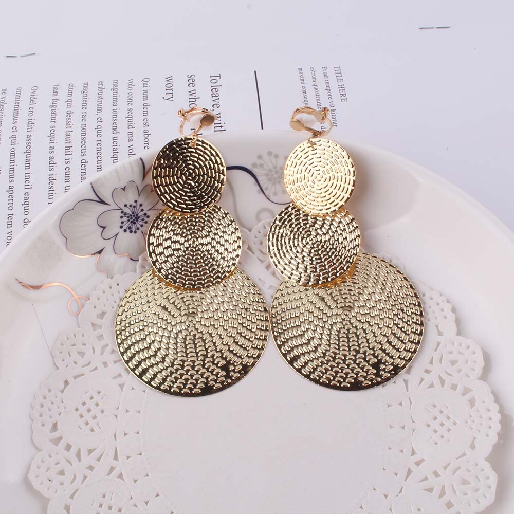 Pendientes de moda: largos de oro con clip para mujer, pendientes vintage sin perforar para niñas y niños, pendientes de clip para fiesta.