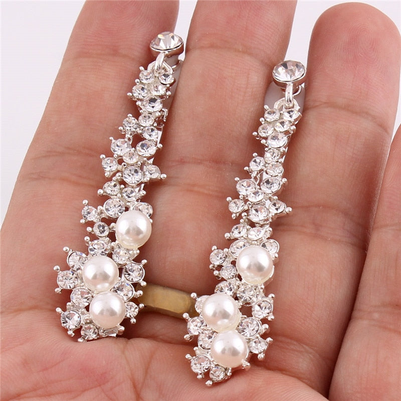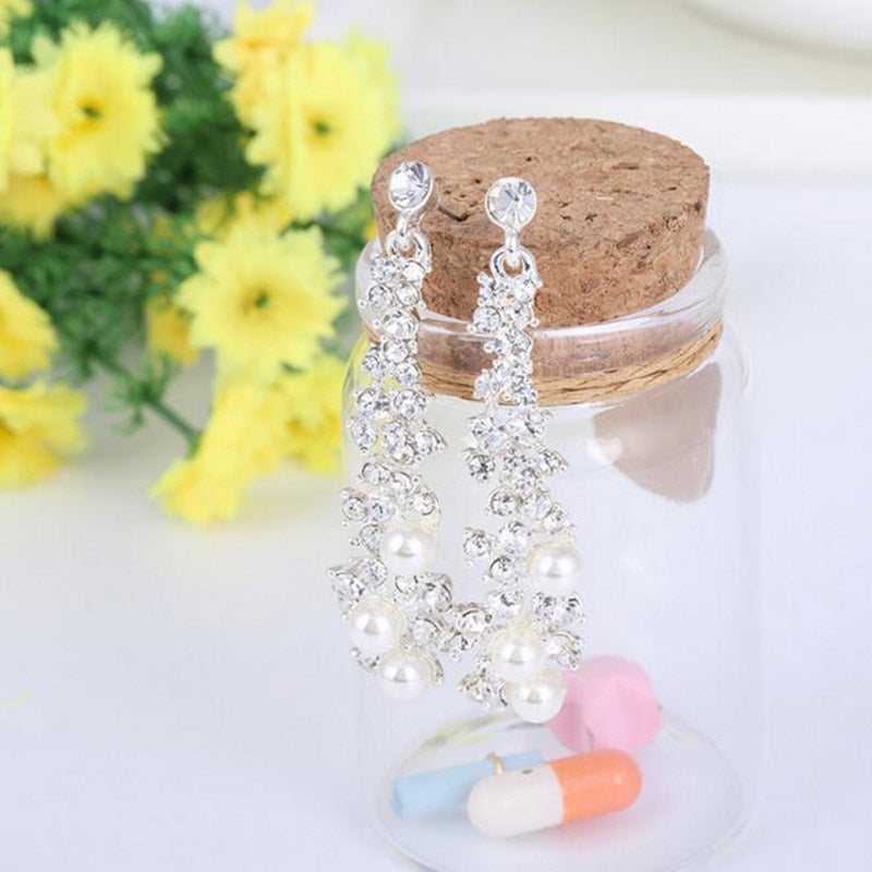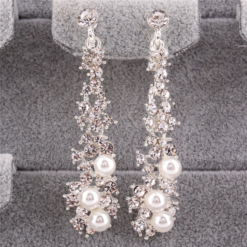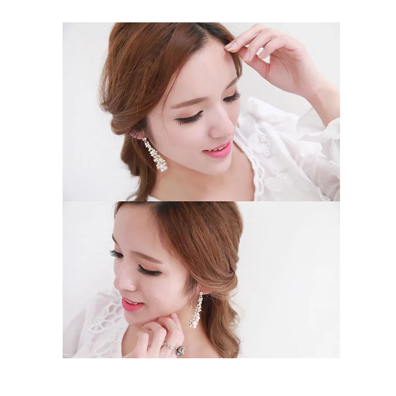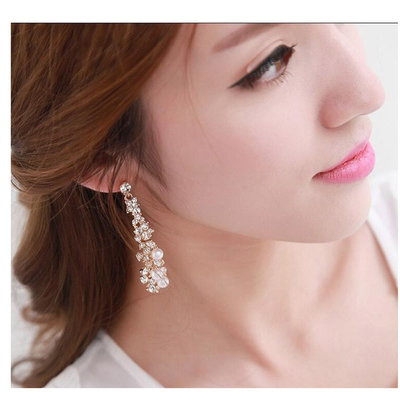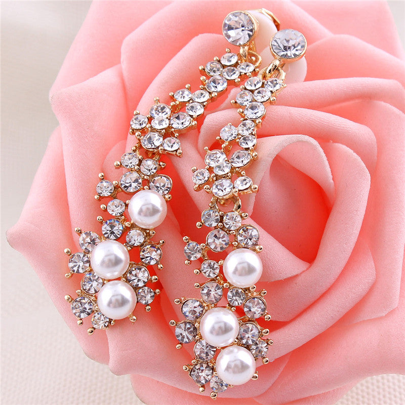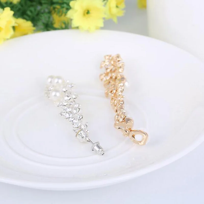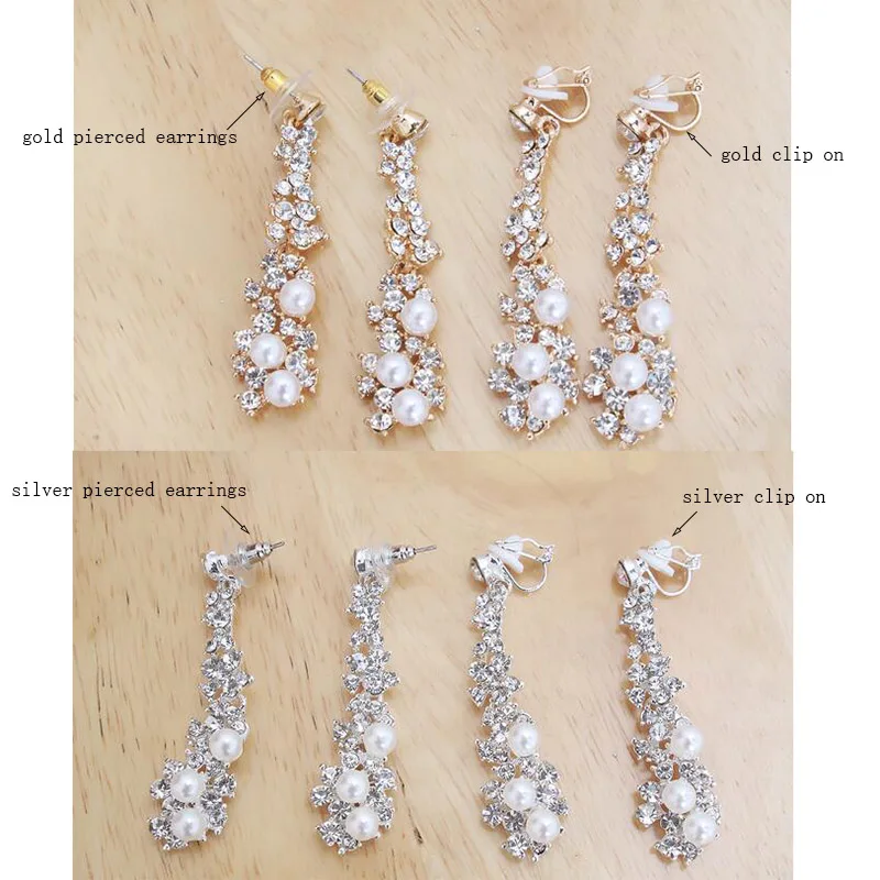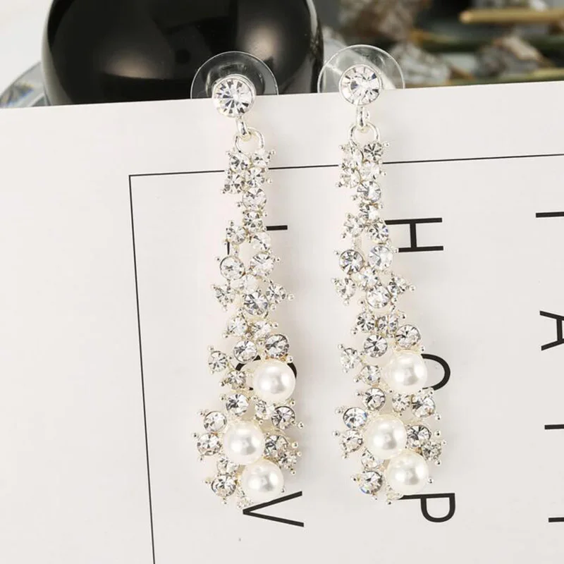 Pendientes de moda: pendientes largos de alta calidad con perlas de imitación de diamantes de imitación, sin perforar, para mujer, para fiestas, bodas, de lujo.