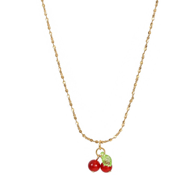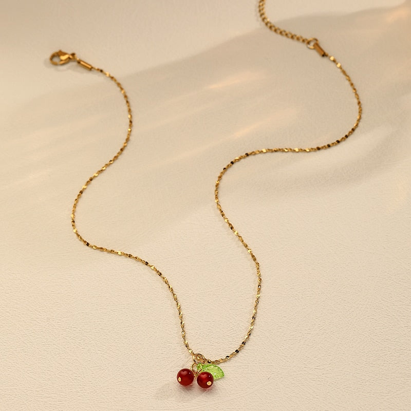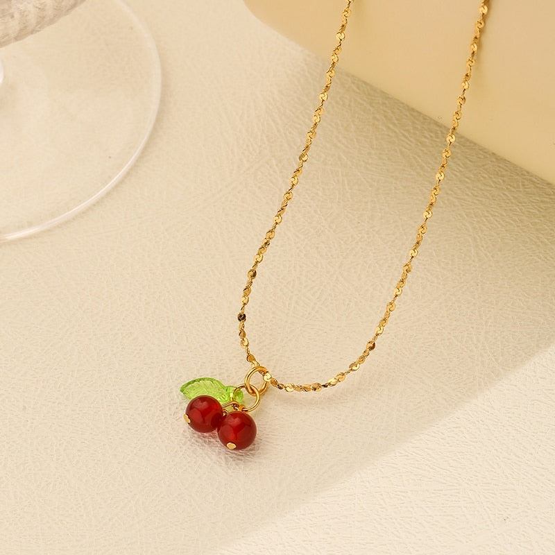 Precioso collar de cerezas de acero inoxidable, joyería de moda para estudiantes.