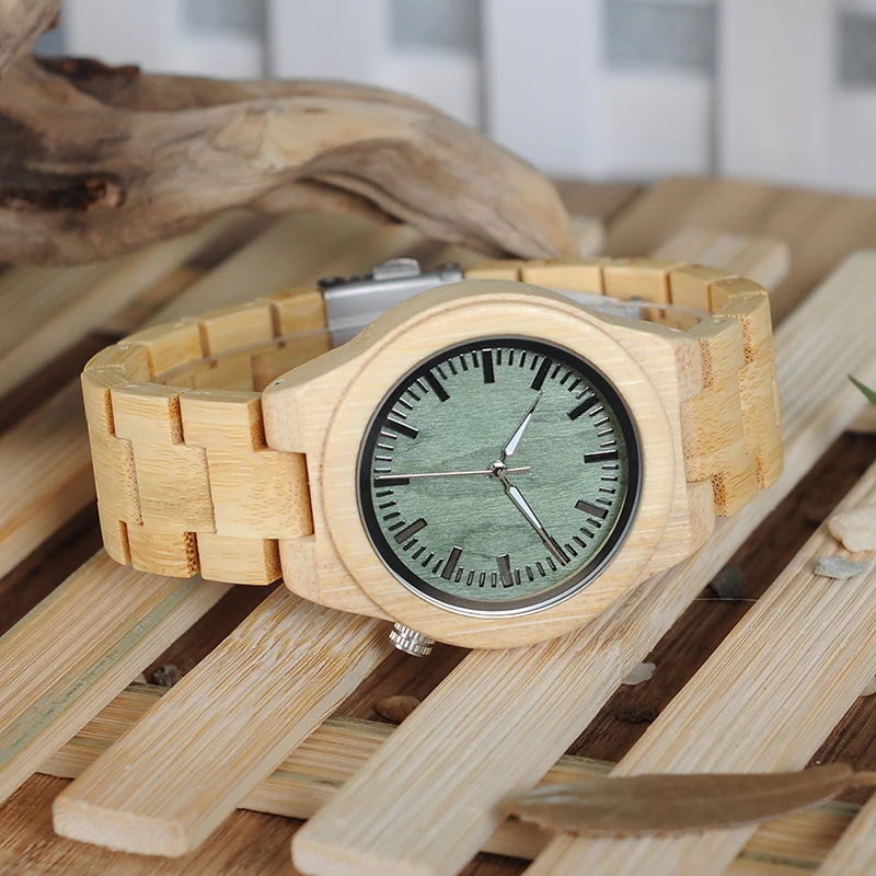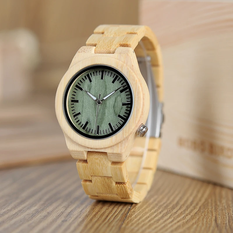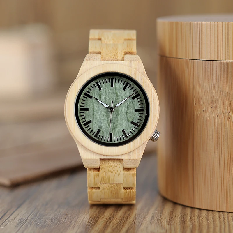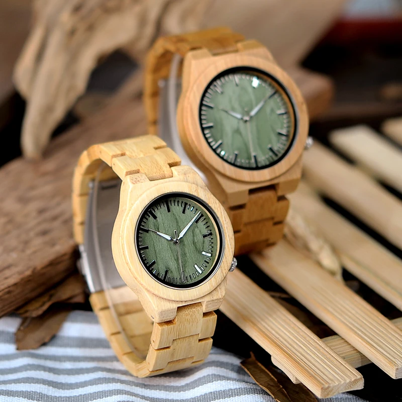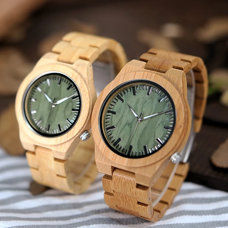 Relojes para parejas: relojes de madera para parejas, con esfera verde de bambú y cuarzo, en caja de regalo de bambú.