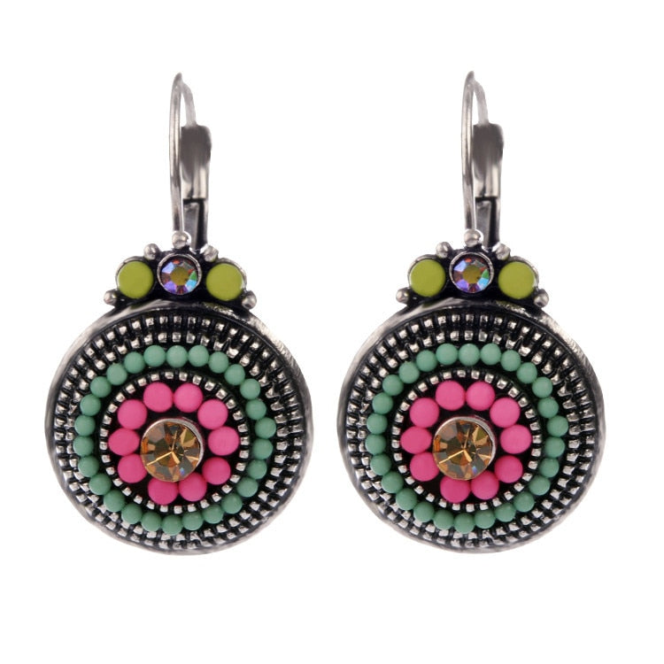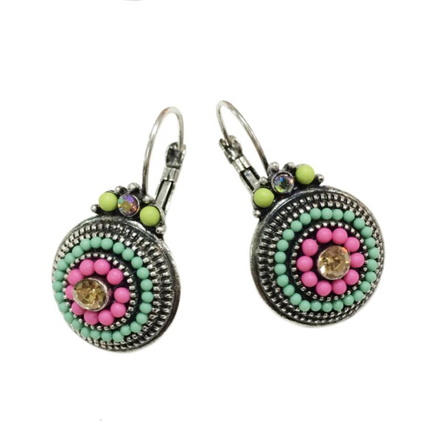 Pendientes de moda vintage de dos piezas con cuentas de ful y dijes de diamantes de imitación, estilo étnico, para mujer, joyería llamativa.