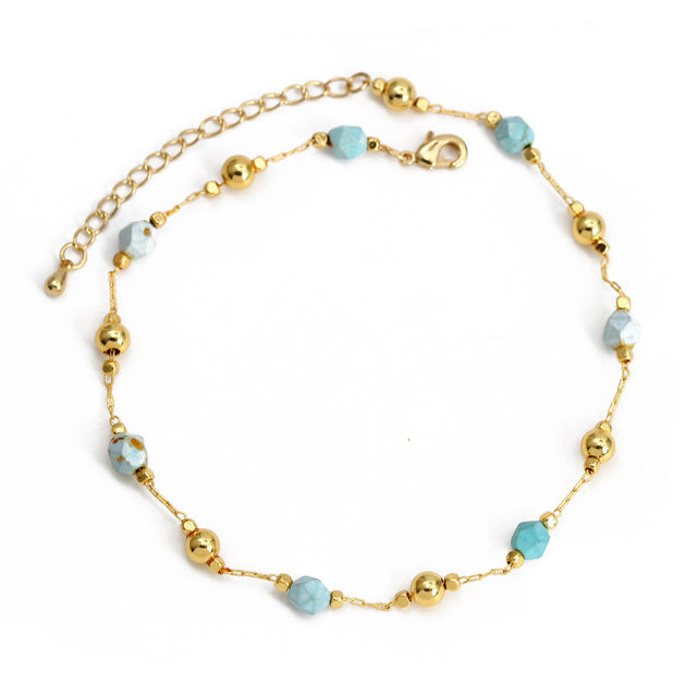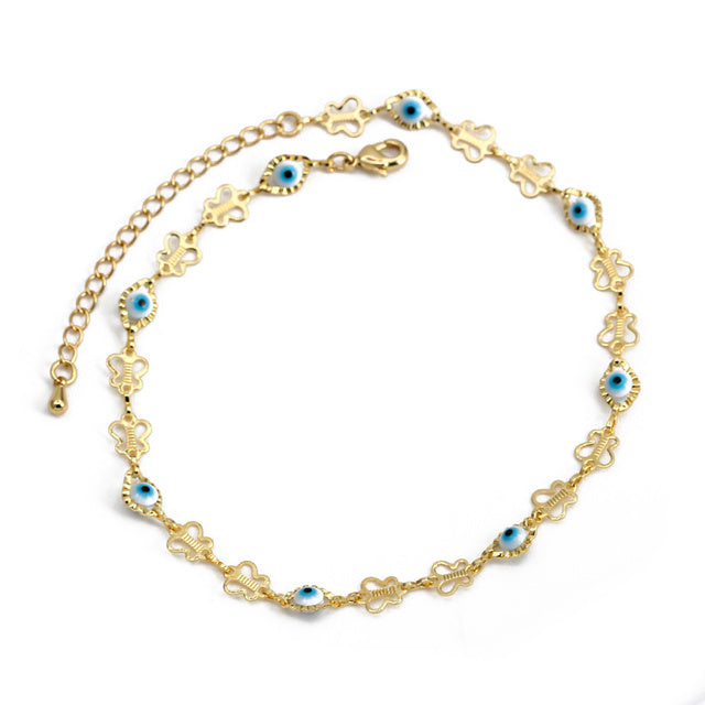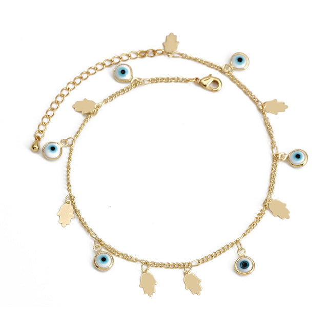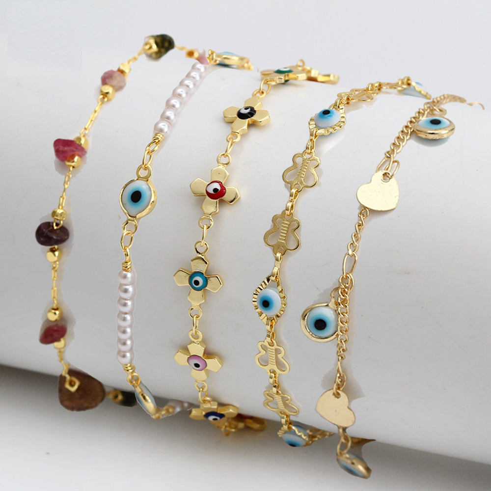 Tobilleras - Tobillera con ojo de la suerte, mano de Fátima, ojo malvado, cadena para el pie, pulsera ajustable de perla y piedra natural para mujeres y niñas, joyería