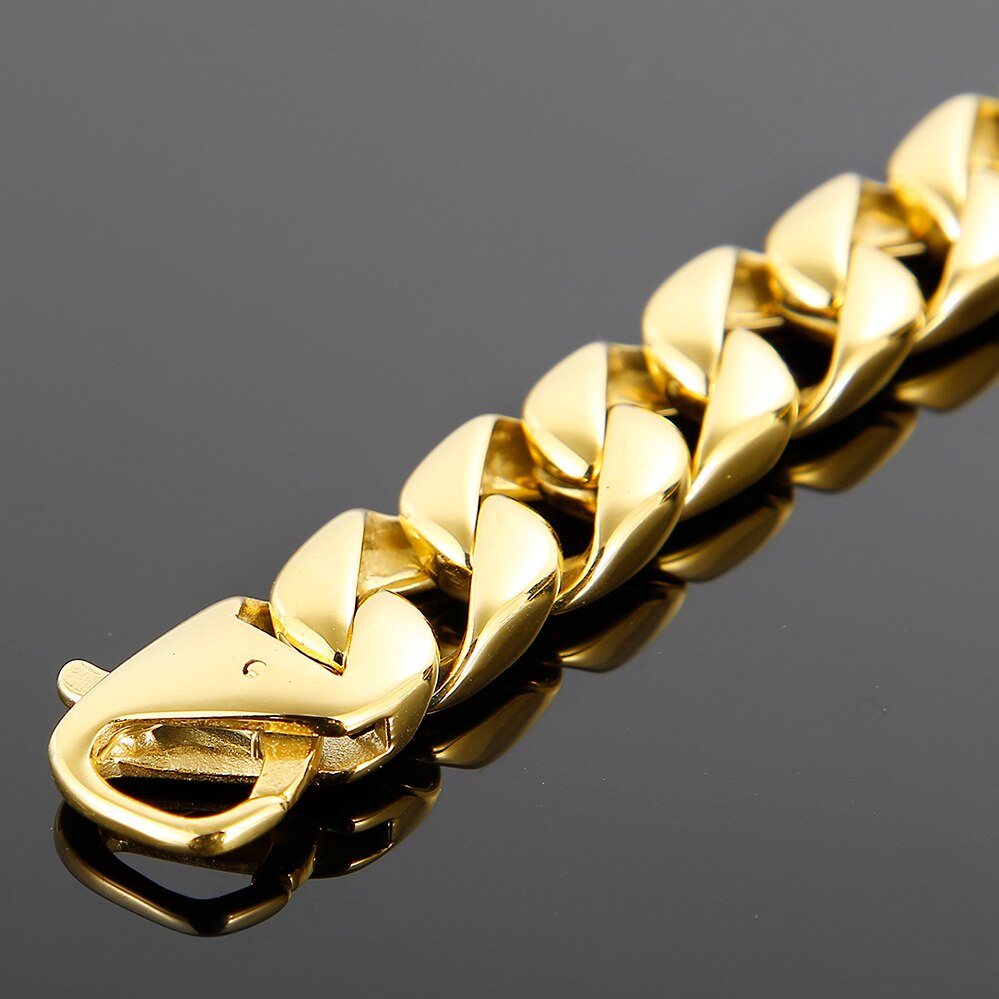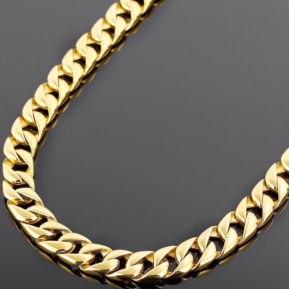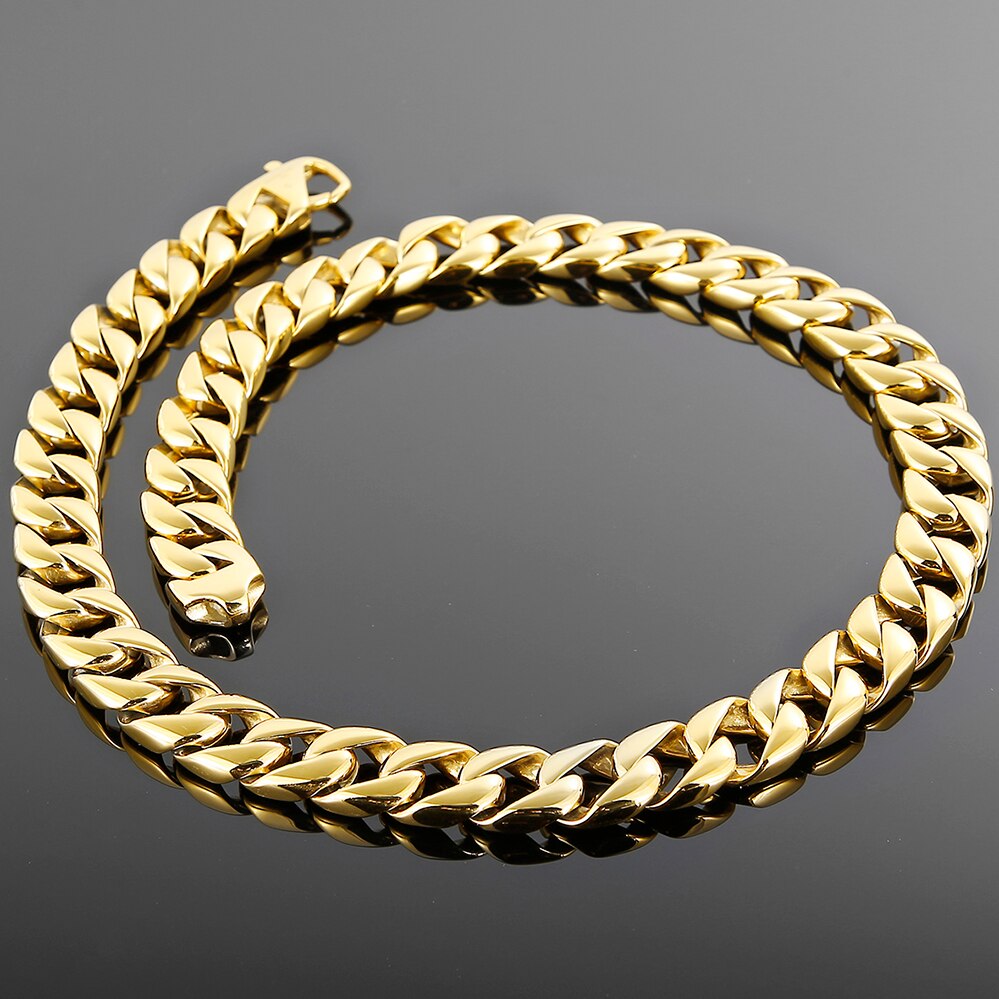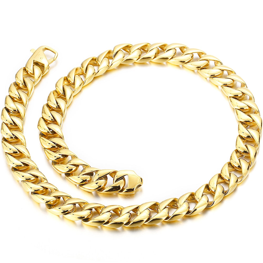 Collar de lujo con cadena de eslabones cubanos Miami de acero inoxidable chapado en oro de 15 mm