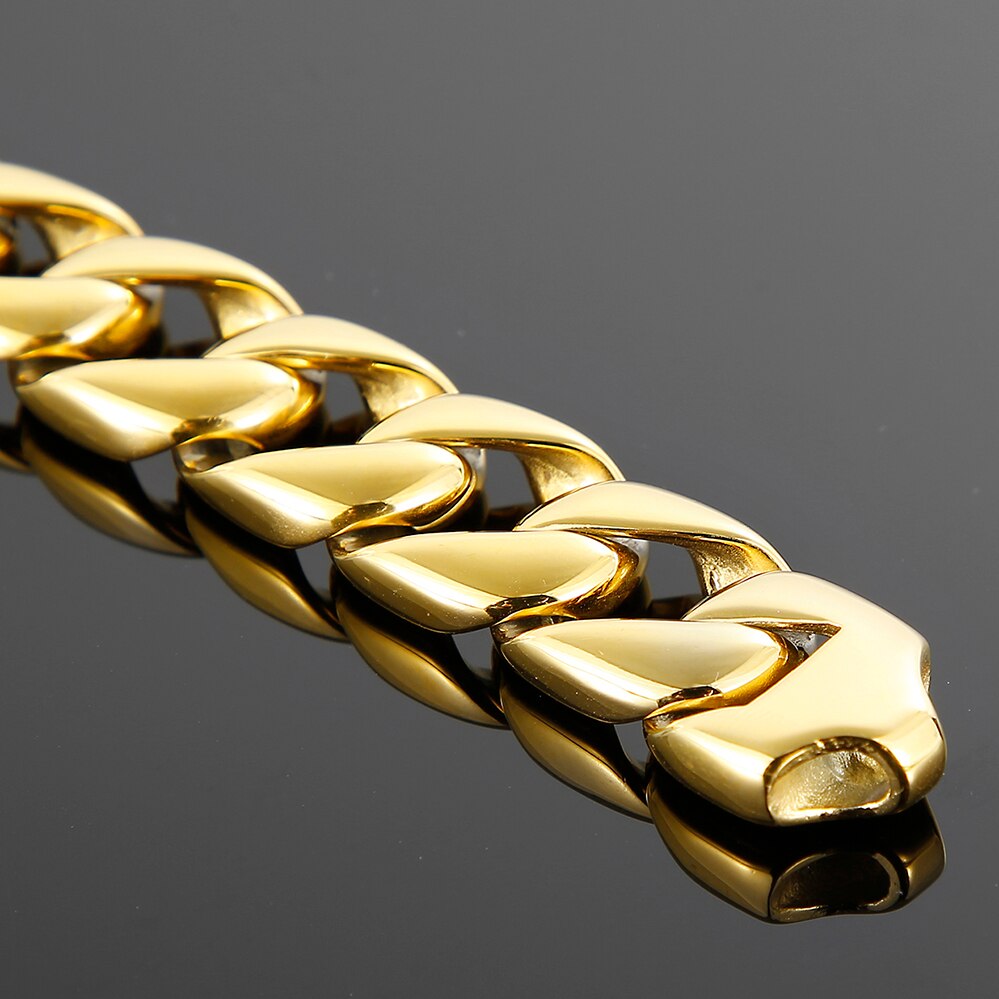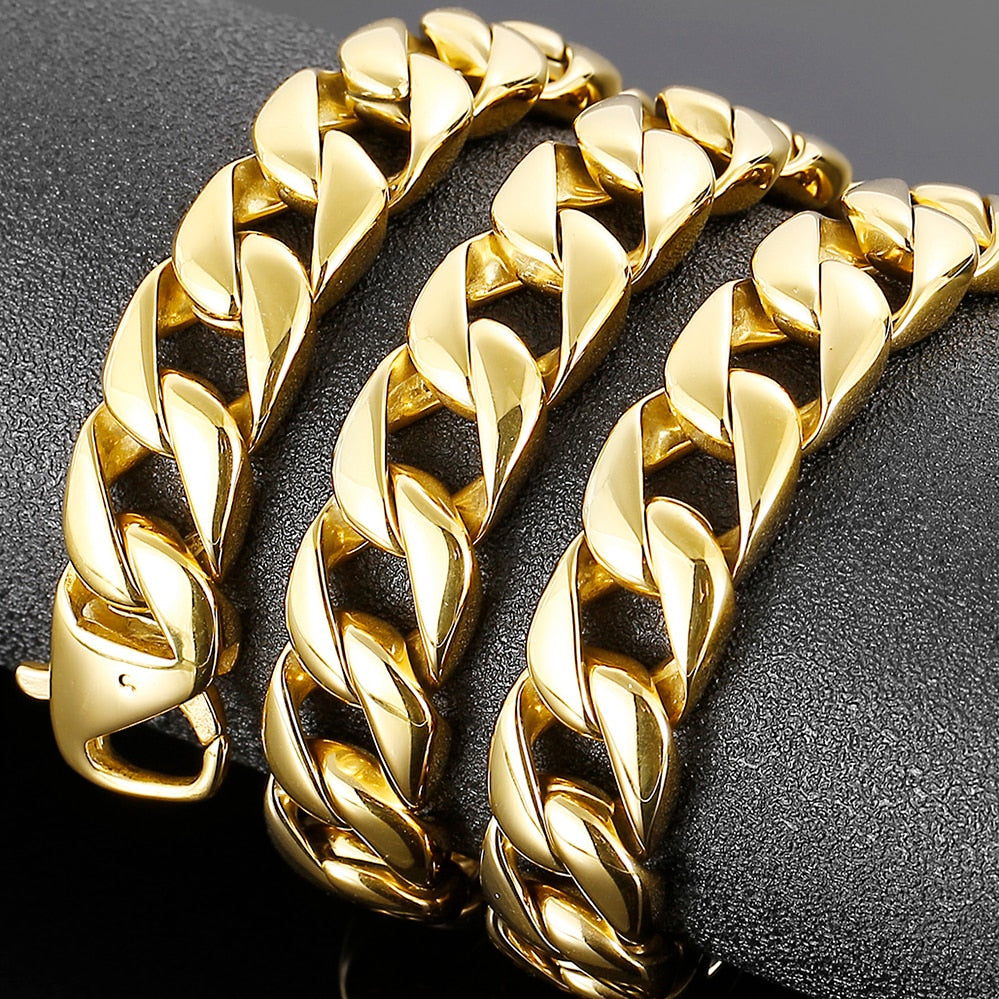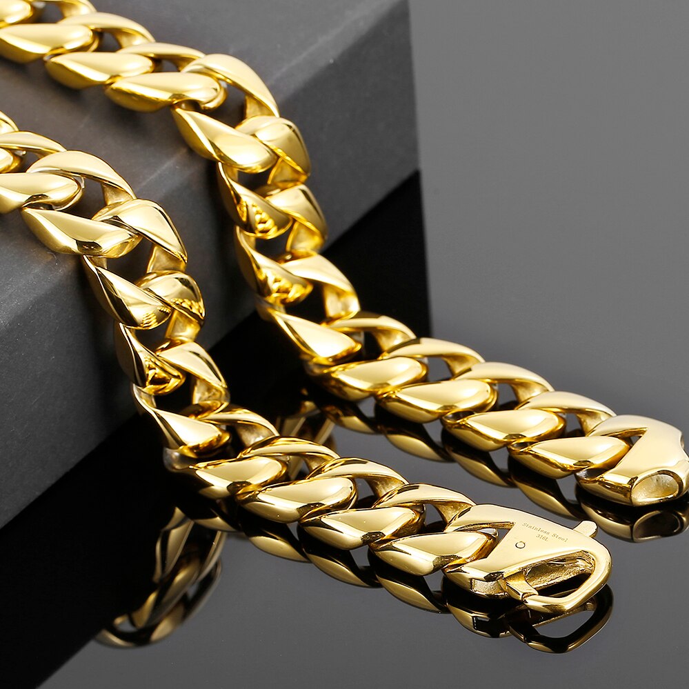 Collar de lujo de 15 mm con eslabones cubanos Miami de acero inoxidable chapado en oro para hombre, cadena de 23 pulgadas alrededor del cuello, joyería para hombre.