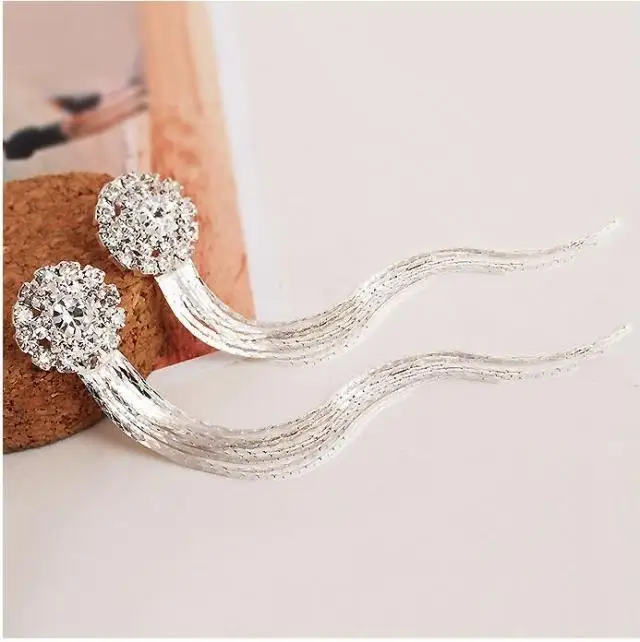 Pendientes de moda: lujosos pendientes de novia con borlas redondas de diamantes de imitación, sin perforar, para mujer, grandes y llamativos.