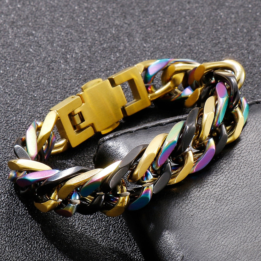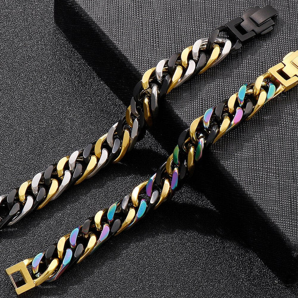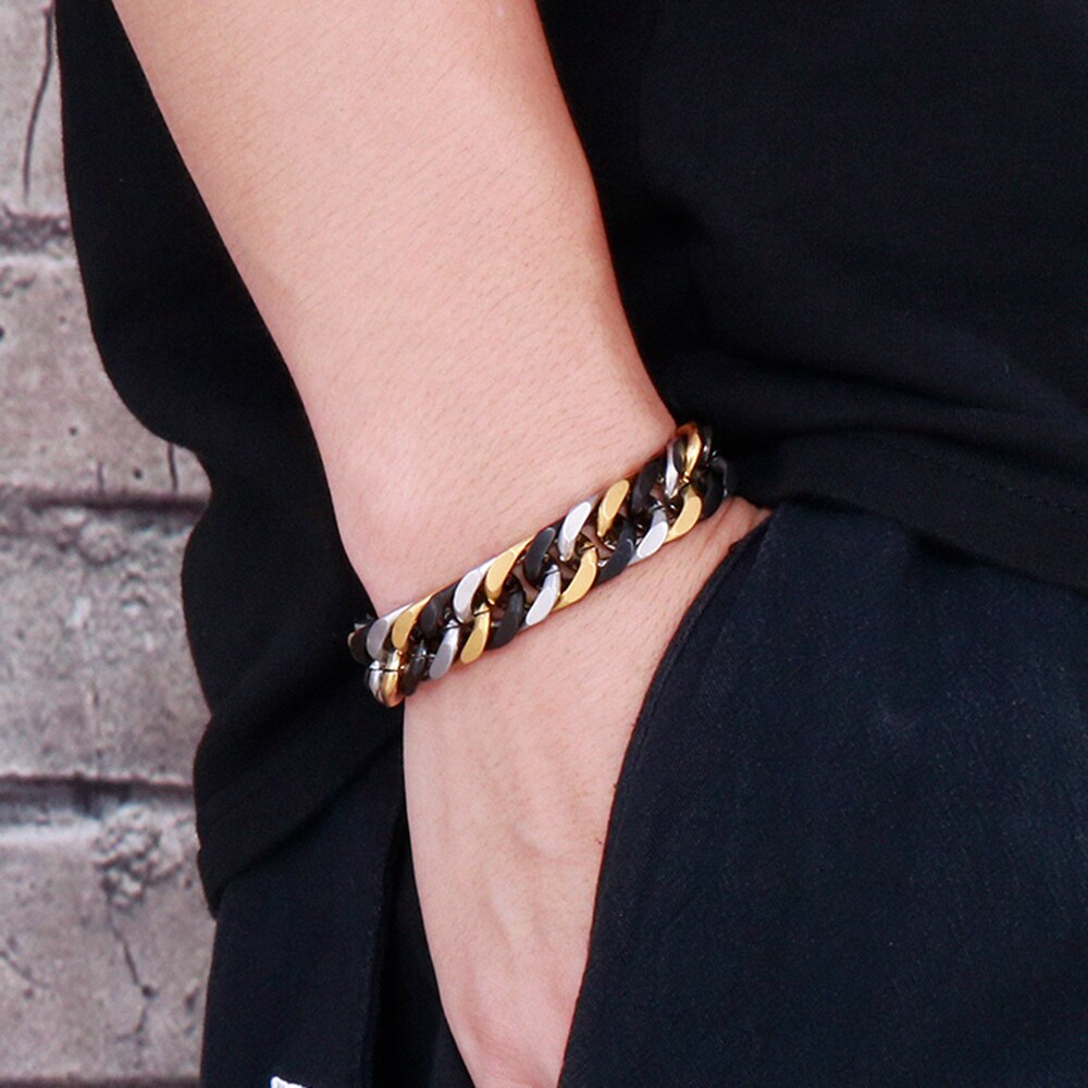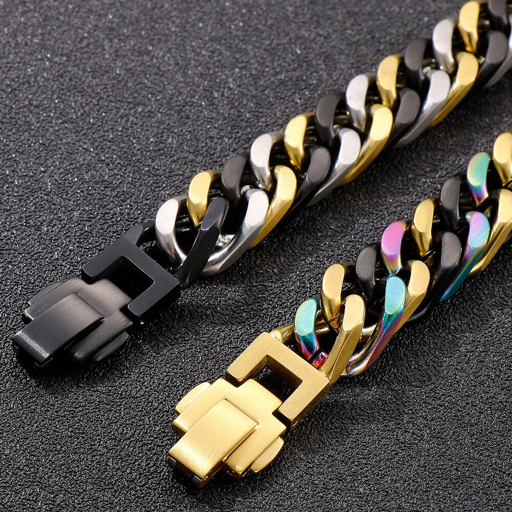 Pulsera de cadena de eslabones de lujo para hombre, de 12 mm y 17-23 cm, con asas de acero inoxidable macizo y accesorios de joyería.