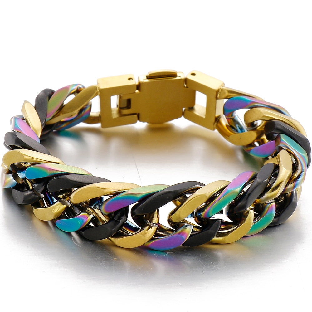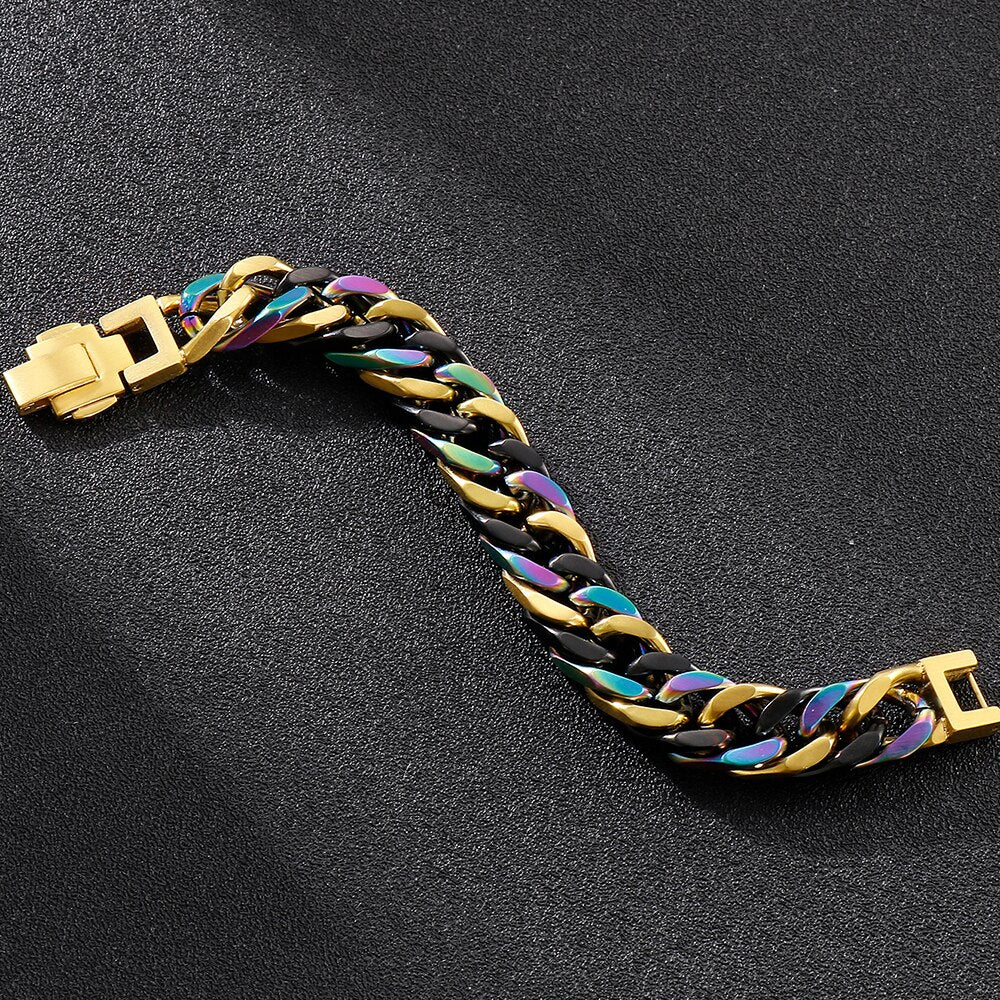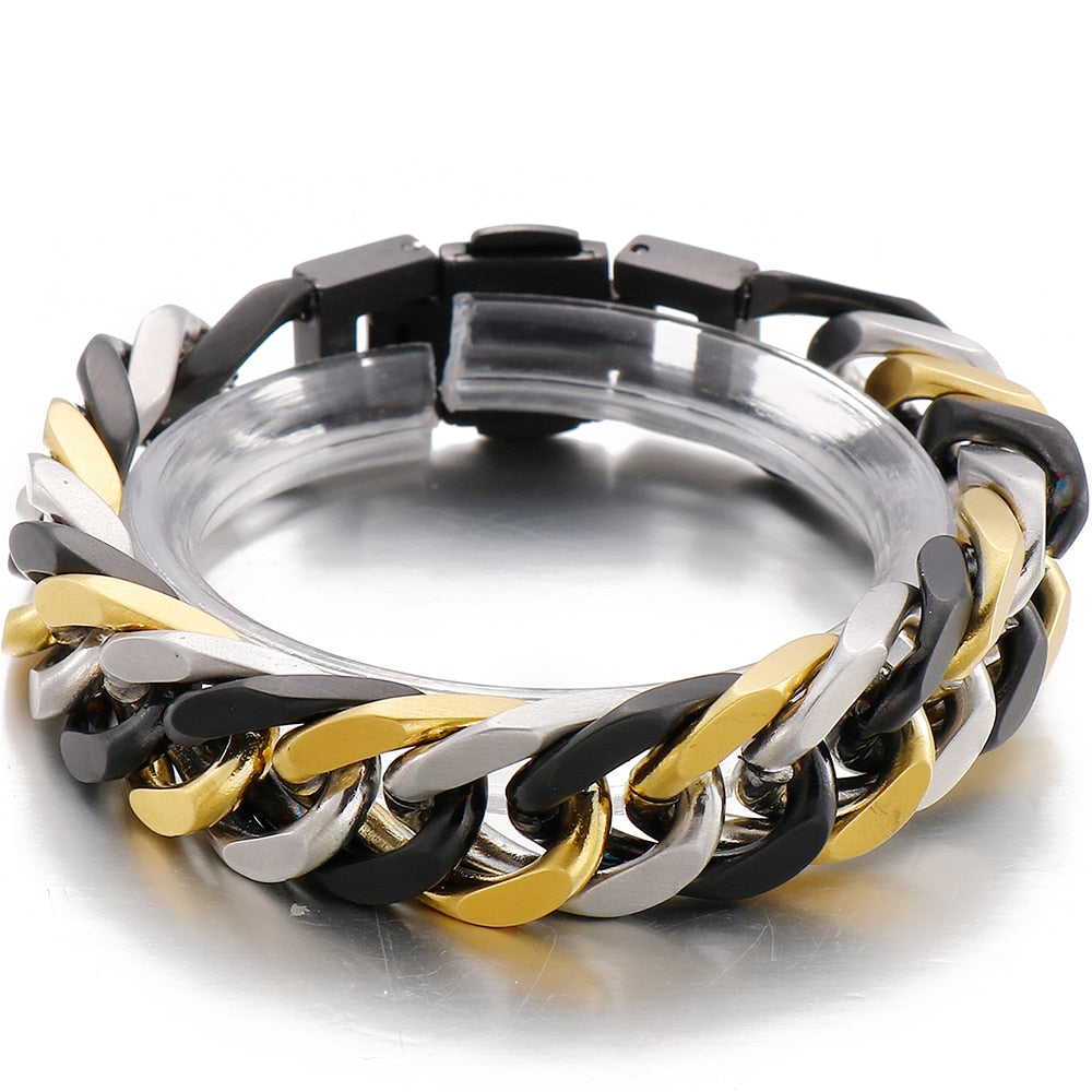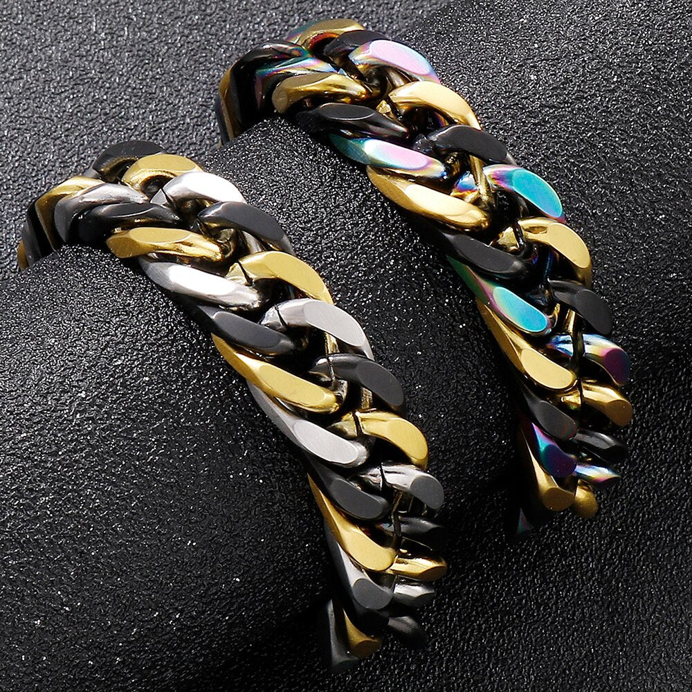 Pulsera de cadena de eslabones de lujo para hombre, de 12 mm y 17-23 cm, con asas de acero inoxidable macizo y accesorios de joyería.