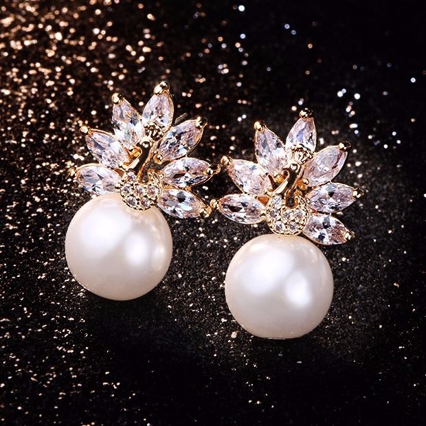 Pendientes de moda de lujo con cristales de circonita cúbica y perlas en forma de pavo real, con clip, para mujer, niña, fiesta, sin perforaciones, joyería de moda favorita.