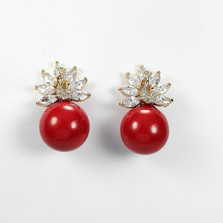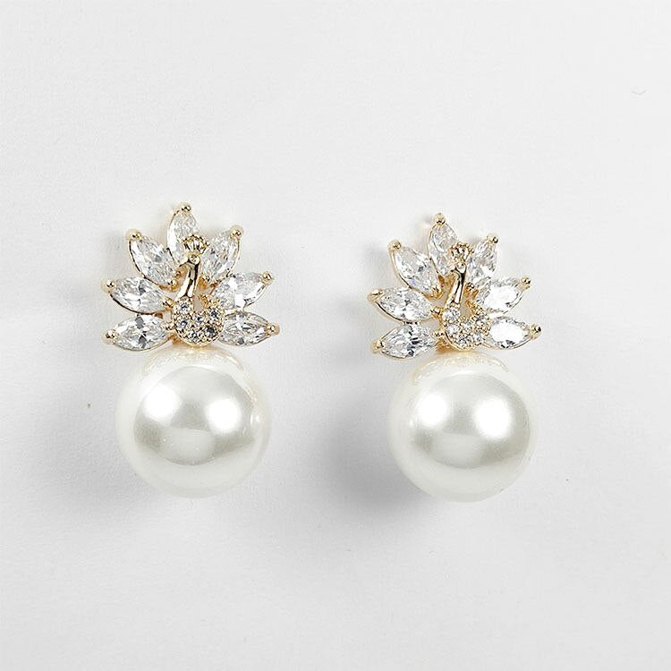 Pendientes de clip de lujo con cristales de circonita y perlas en forma de pavo real para mujer