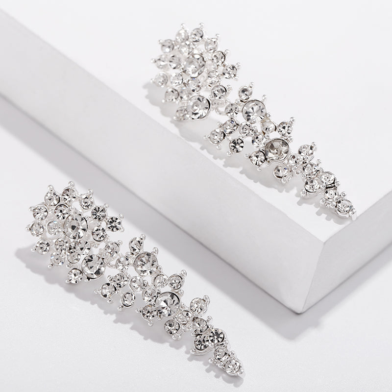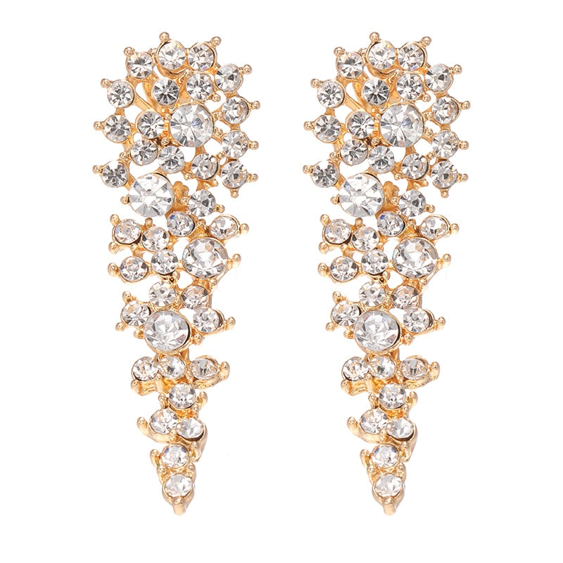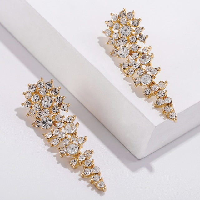Pendientes de moda: ¡Novedad! Pendientes largos de lujo con cristales, sin perforaciones, para novias, para bodas, fiestas, compromisos, sin agujeros.