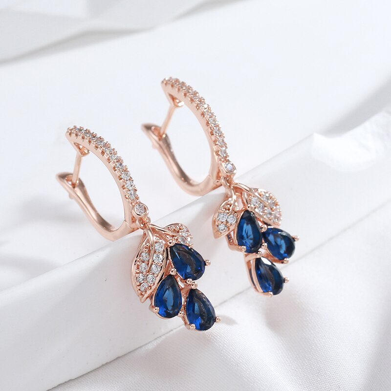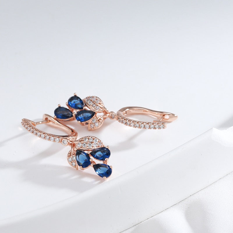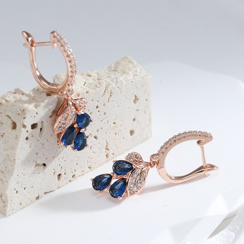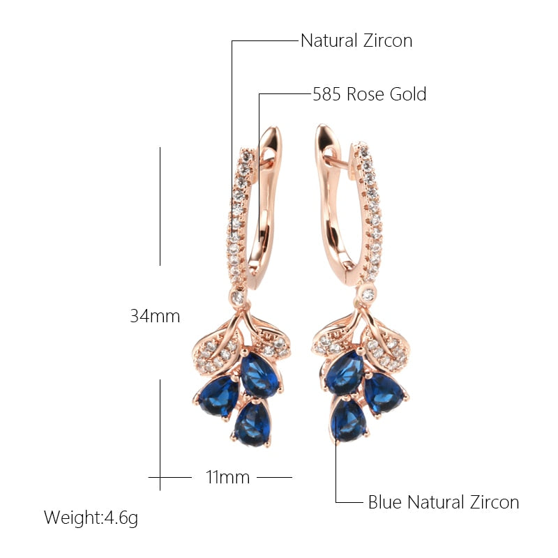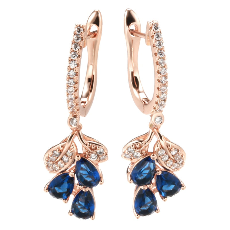 Pendientes colgantes de lujo con circonitas azules para mujer, oro rosa 585, joyería fina geométrica de moda para fiestas y bodas.