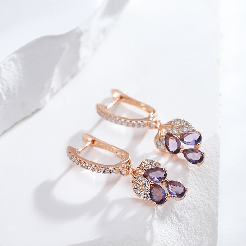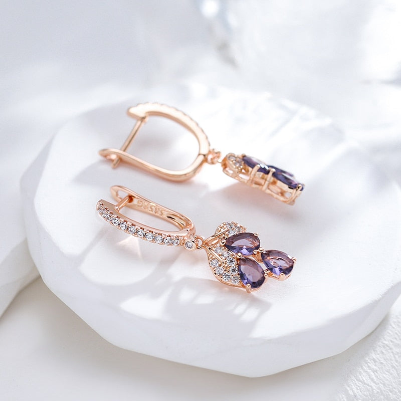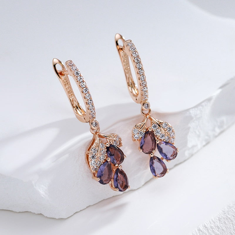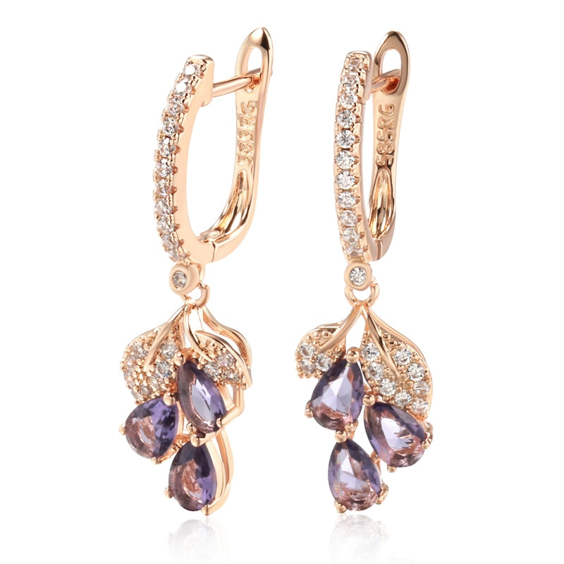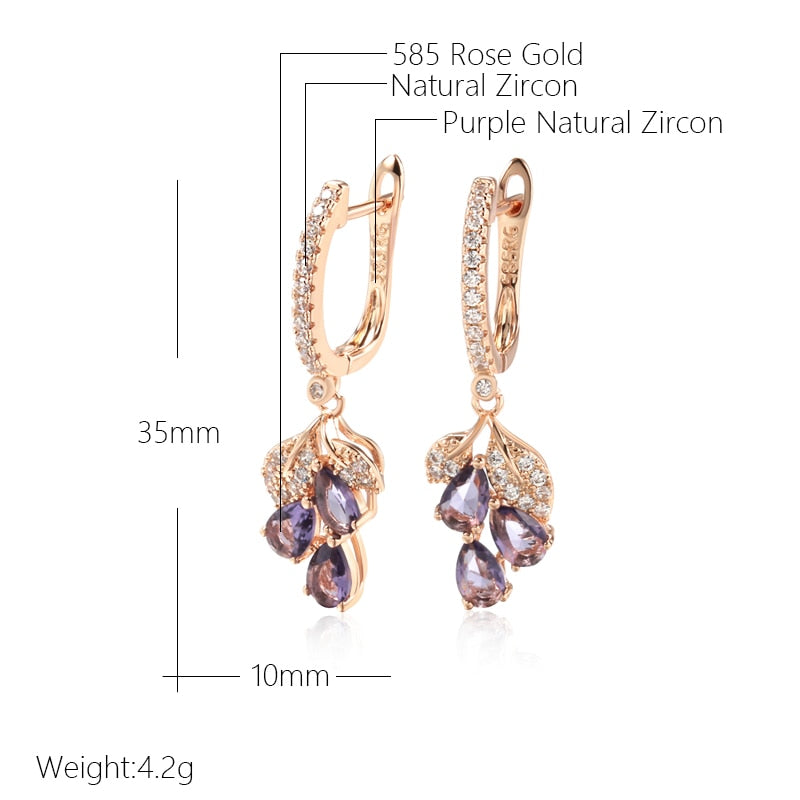 Pendientes colgantes de lujo con circonita morada para mujer, joyería étnica de oro 585, accesorios vintage para boda.