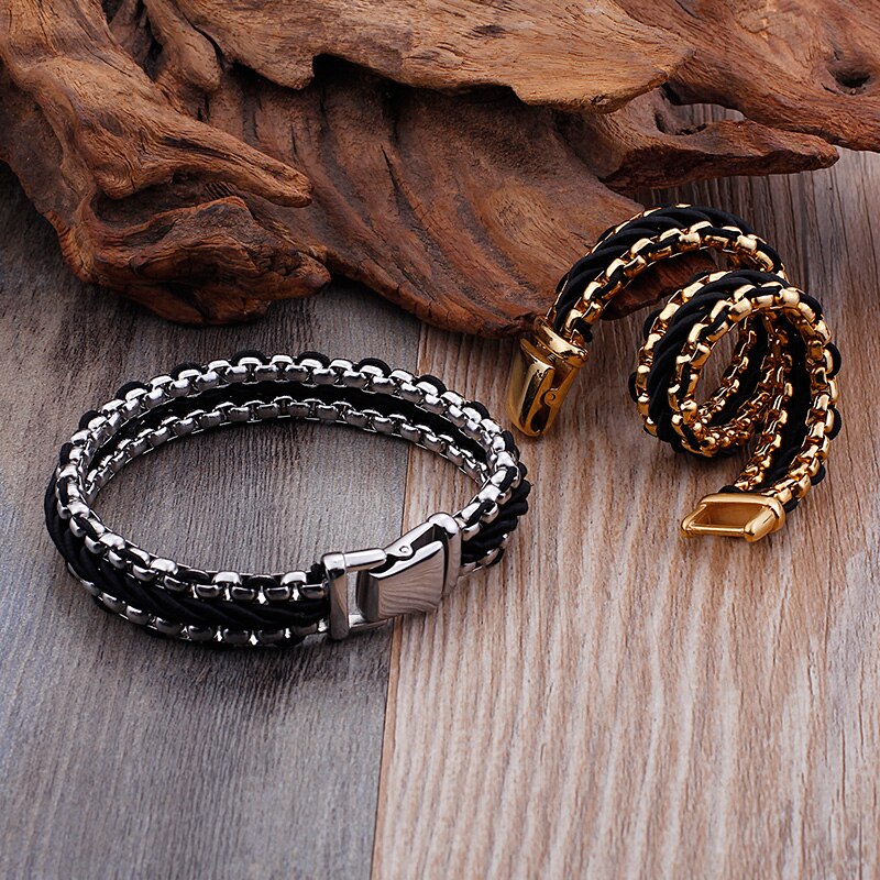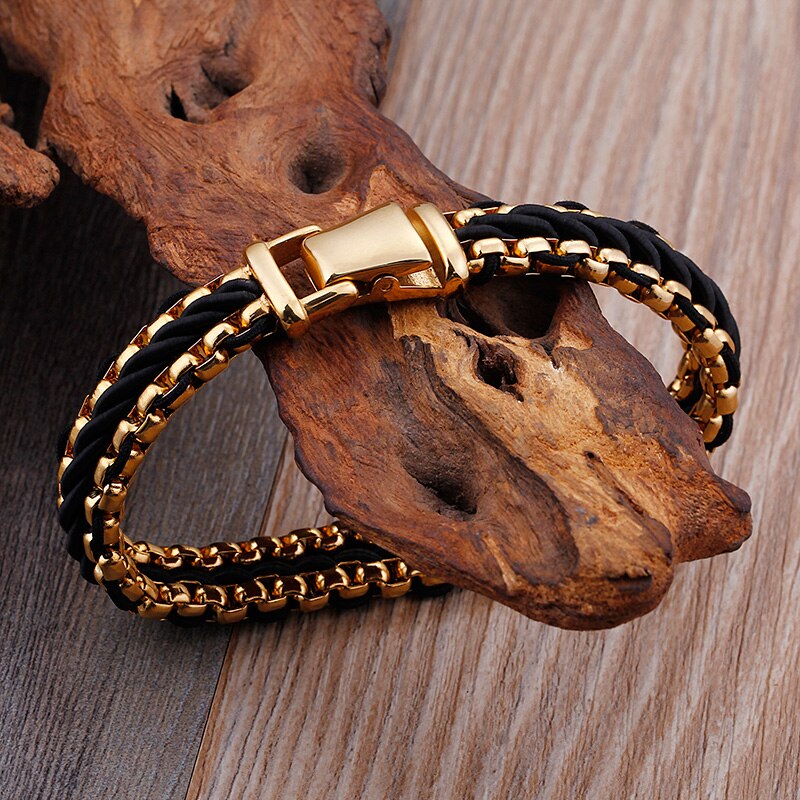 Pulsera de acero inoxidable chapada en oro de lujo para hombre, 12 mm de ancho.