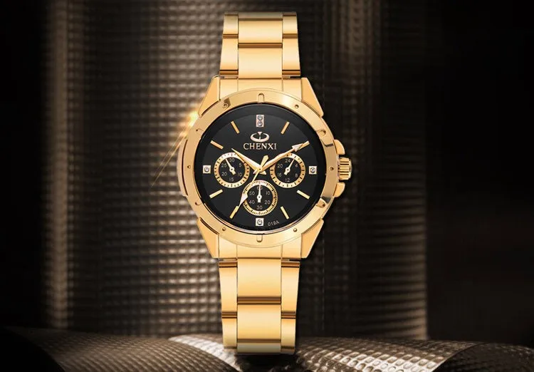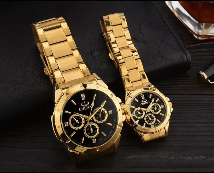 Relojes para amantes: relojes de lujo para hombre y mujer, de cuarzo dorado, de acero inoxidable, resistentes al agua, para parejas