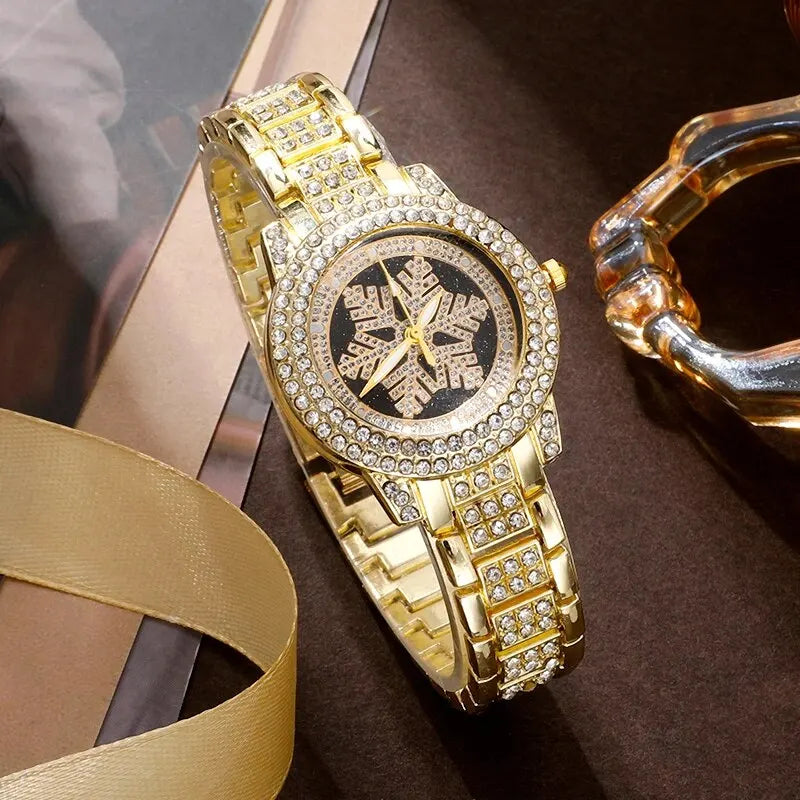 • Diseño con incrustaciones de diamantes de imitación: el reloj, el anillo, el collar y los pendientes están adornados con diamantes de imitación brillantes, que añaden un toque de glamour a cualquier atuendo.