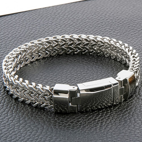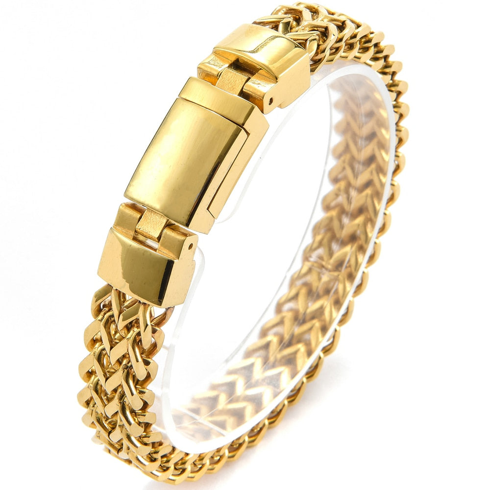 Pulseras de acero inoxidable dorado para hombre: joyería motera