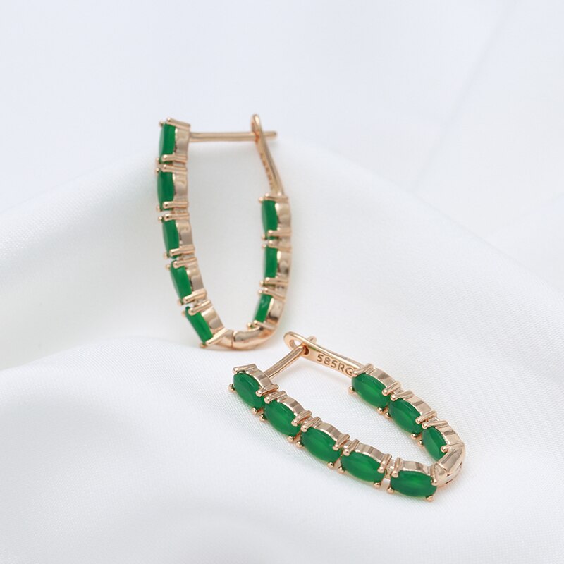 Joyería de oro 585: pendientes de lujo con circonita verde artificial de corte ovalado para mujer, pendientes coreanos largos con borlas, joyería con personalidad para bodas.