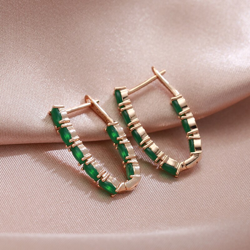Pendientes de lujo con circonita verde artificial de corte ovalado para mujer