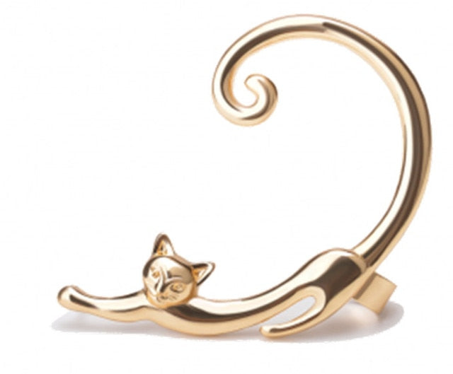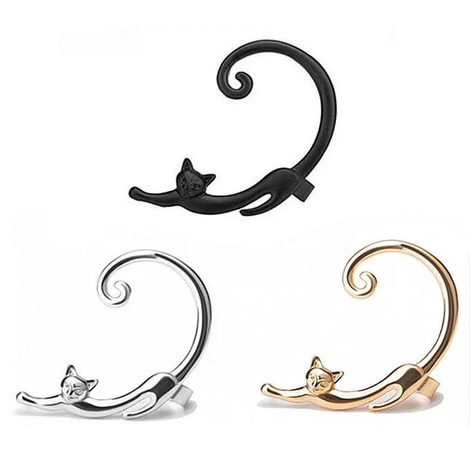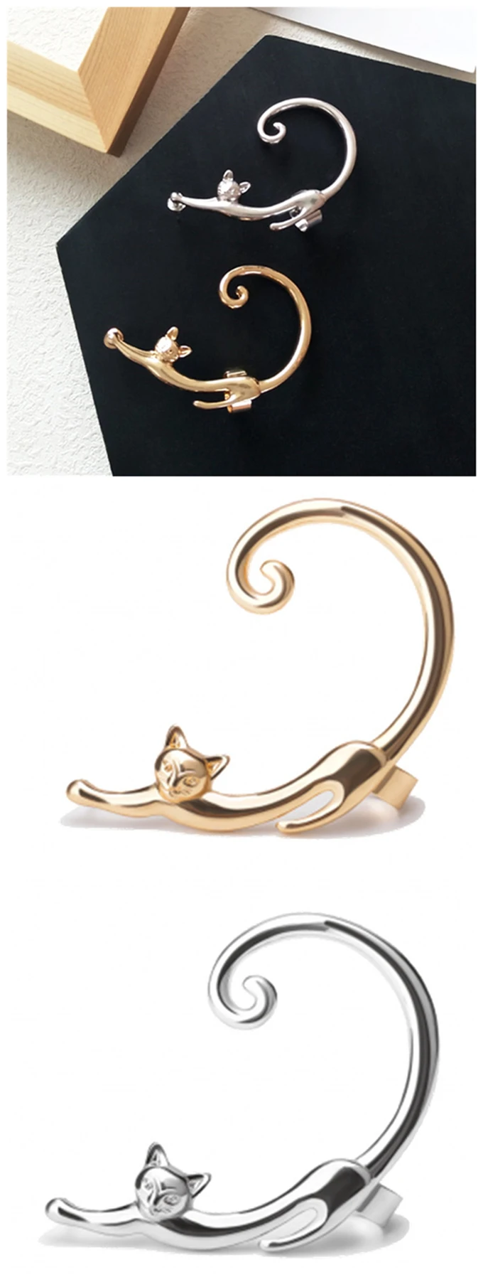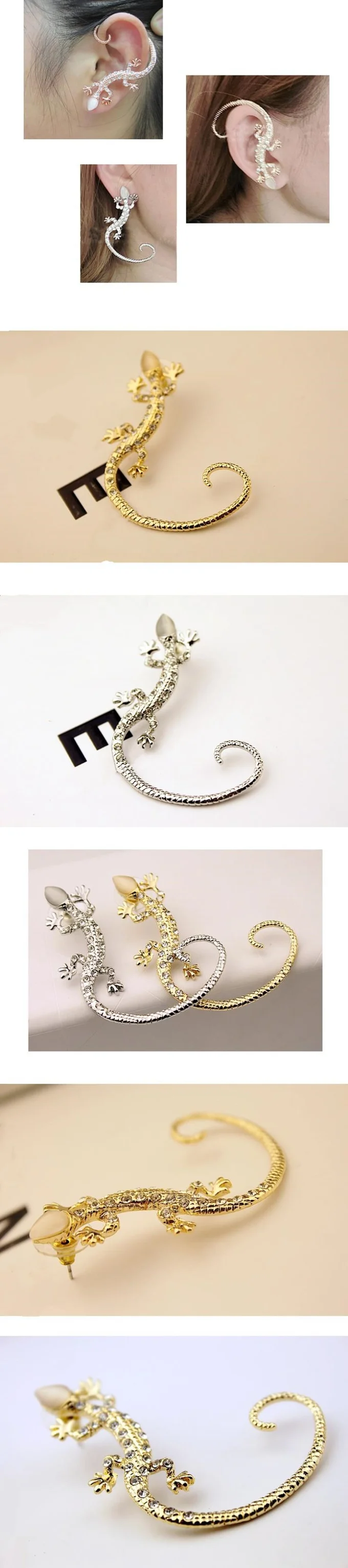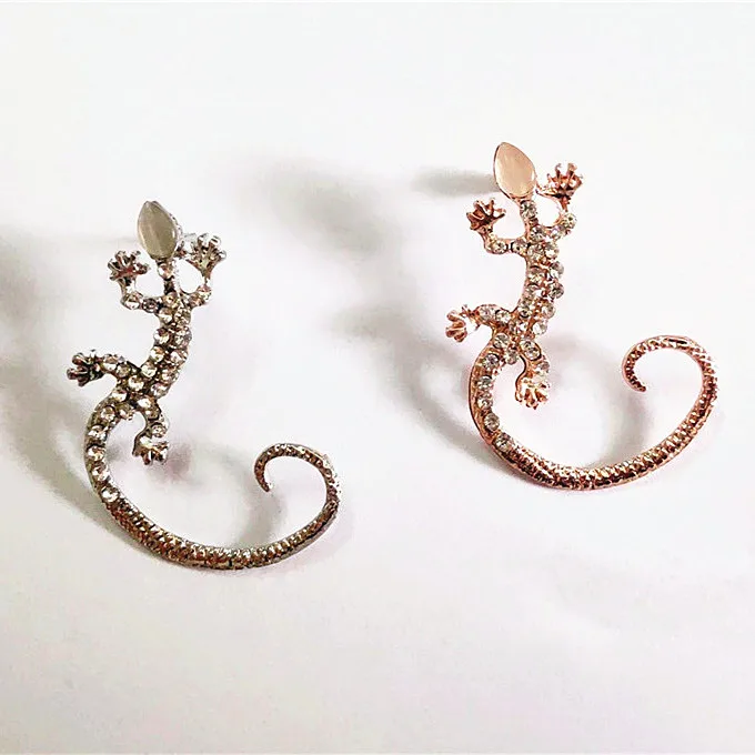 Pendientes de moda: nuevos pendientes de moda con diamantes de imitación, de lujo, color oro rosa, exagerados, con lagartijas gecko, elegantes pendientes de metal con clip para orejas de gato.