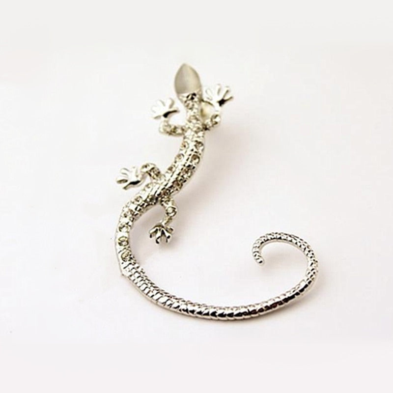 Pendientes de lujo con forma de lagarto gecko exagerada en color oro rosa y elegante clip metálico para orejas de gato.